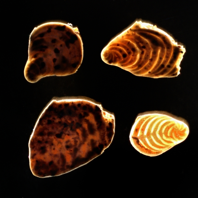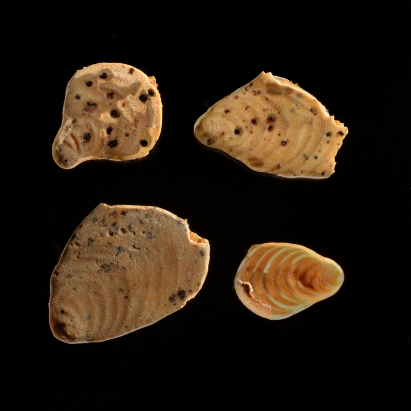 Passend zum 1. Advent: ein Stück Kuchen, und zwar Sternberger Kuchen. Dies ist ein Sedimentgestein aus dem oberen Oligozän (27,5 – 25,5 Mio.  Jahre), es wird zum überwiegenden Teil aus fossilem Material gebildet. Bei der Säuberung/Sandstrahlung gibt es dann reichlich Restmaterial, aus dem man bei sehr viel Zeit und/oder als Sympathisant von Sisyphos unter dem Stemi einige Foraminiferen heraussuchen kann: keine 5 Stunden später hat man schon so ca. 2 Dutzend gefunden.