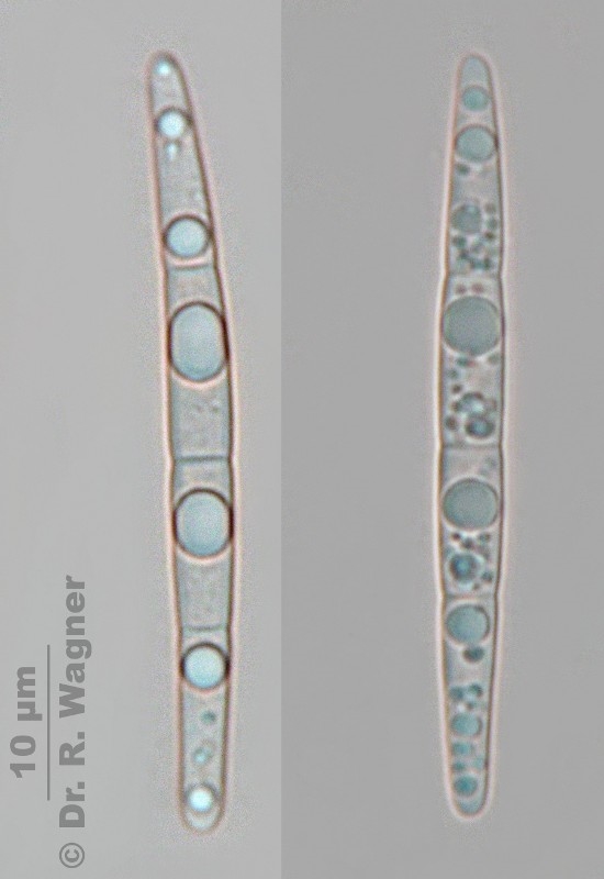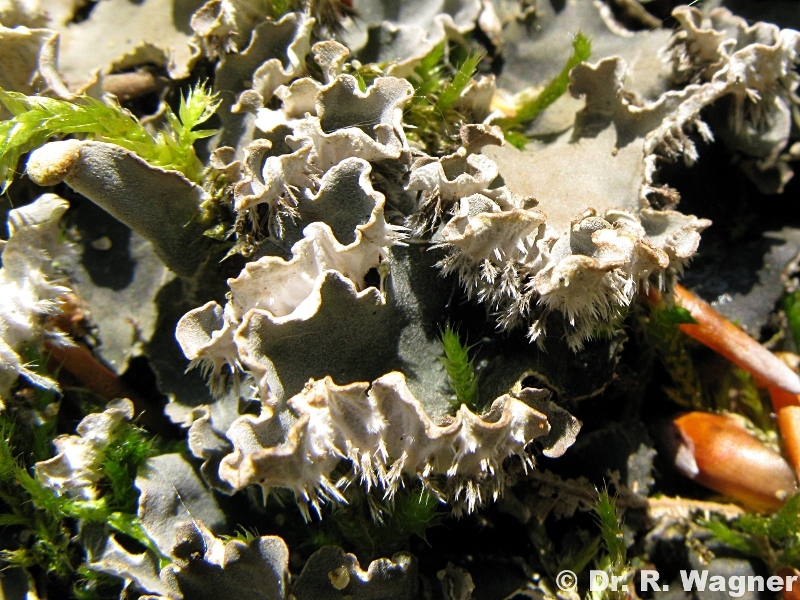- Die Rhizinen sind dicht verzweigt und büschelig zusammenfließend.