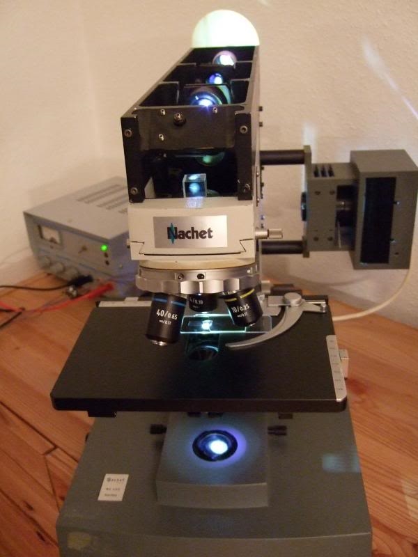 Dafür würde ich erstmal gerne den Strahlengang halbwegs nachvollziehen können. Bei meiner Recherche im Internet (die sehr bescheiden ausfiel) bin ich als einziges auf die Homepage eines französischen Mikroskopikers gestoßen auf der immerhin Prospekte der NS 400-Baureihe als pdf liegen: http://chicheret.free.fr/Microscopie/DocsNACHET/NS400%20NS460%20notice%201906.pdf