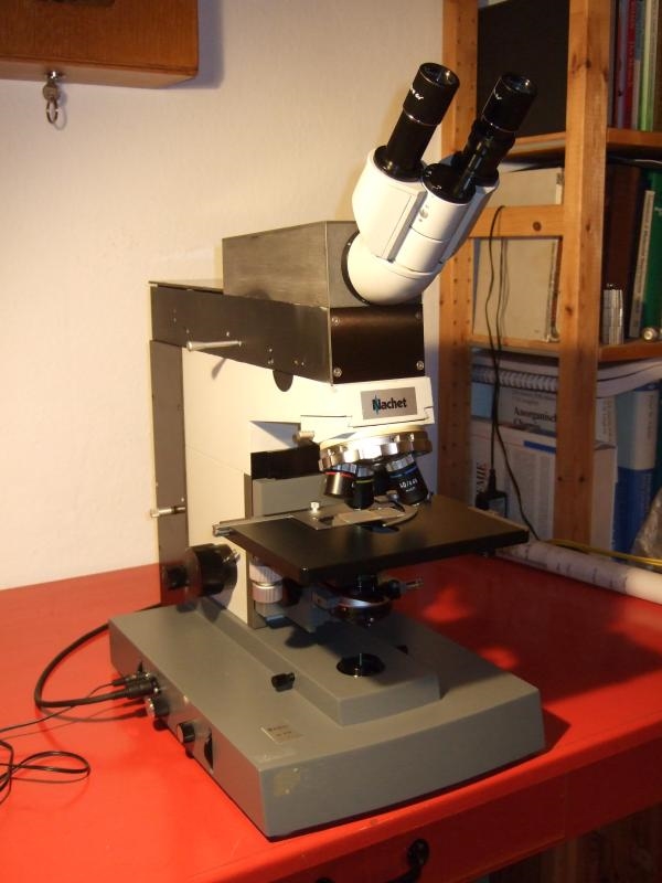 Ich hab ein bisschen im Netz gestöbert. Neben den schon von mir erwähnten französischen Mikroskopiker scheint die Firma Nachet was Mikroskope aus der zweiten Hälfte der 20. Jahrhunderts angeht, recht wenig verbreitet gewesen zu sein.