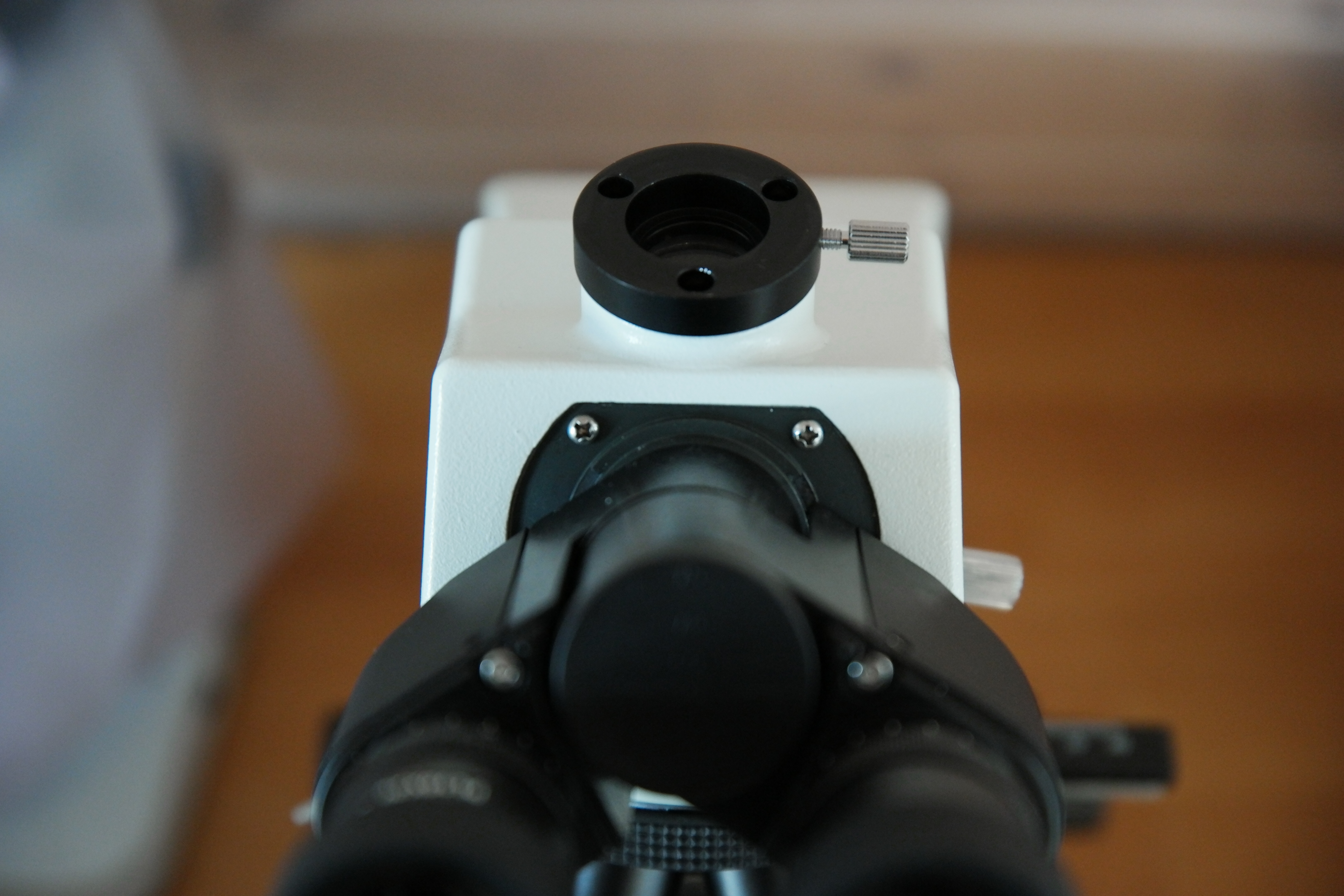 Eine moegliche Loesung (und vielleicht sogar die rundum beste) waere es, die Kamera frei ueber dem Photoausgang mit einem Reprostativ zu montieren und damit mechanisch vom Mikroskop zu entkoppeln. http://www.fotointern.ch/wp-uploads/2014/10/Kaiser-Reprostativ_kombi_750.jpg Sollte es gebraucht bei Ebay geben und ist wahrscheinlich nicht teurer als der Windhaus-Adapter fuer 136 Euro.
