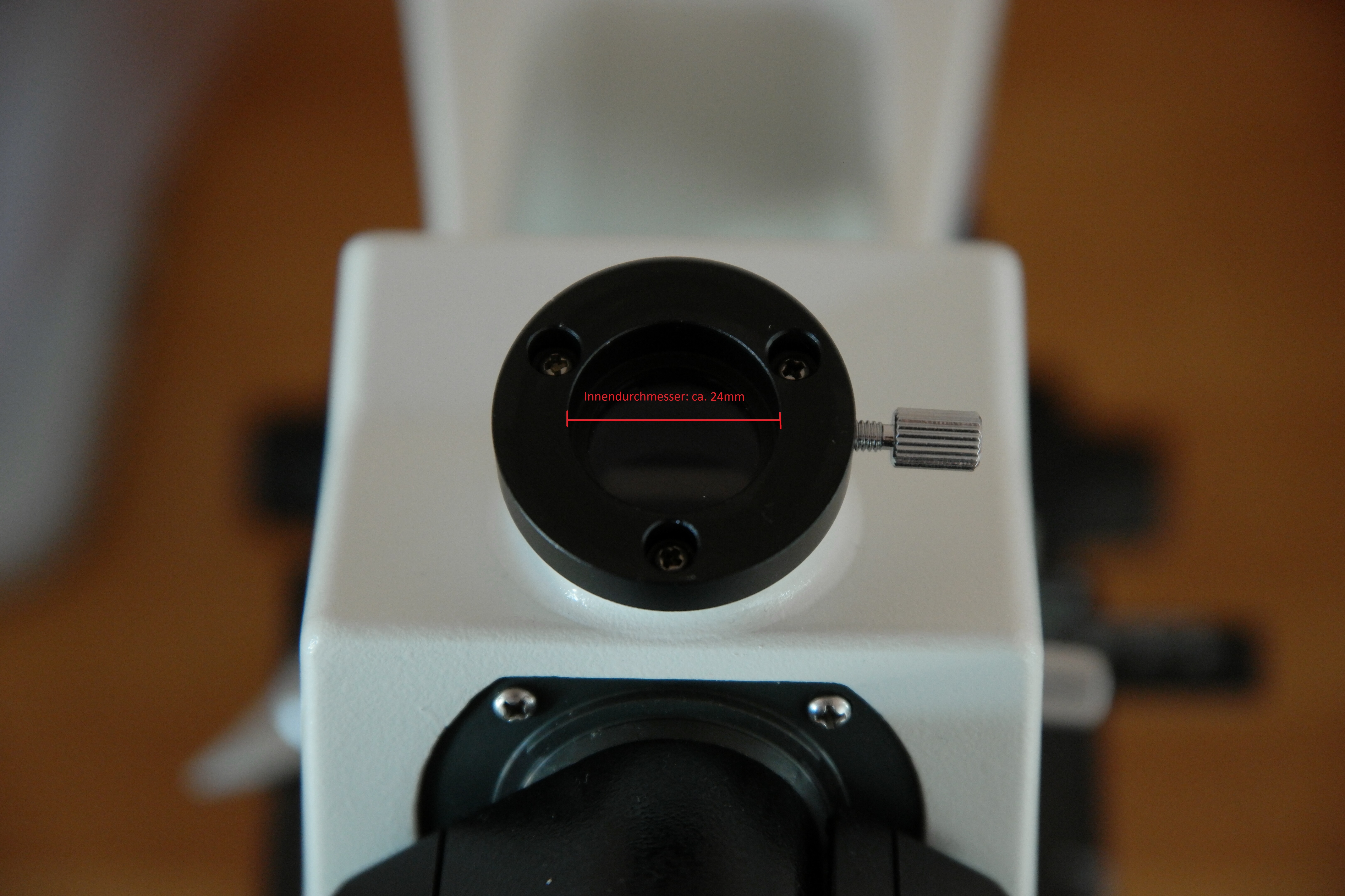 Das Zwischenbild des Mikroskops (dieses liegt gewoehnlich 10 mm unterhalb der Oberkante des Okulartubus) wird direkt auf die Oberflaeche des Kamerasensors projiziert. Dafuer ist der Bresser-Adapter gedacht.