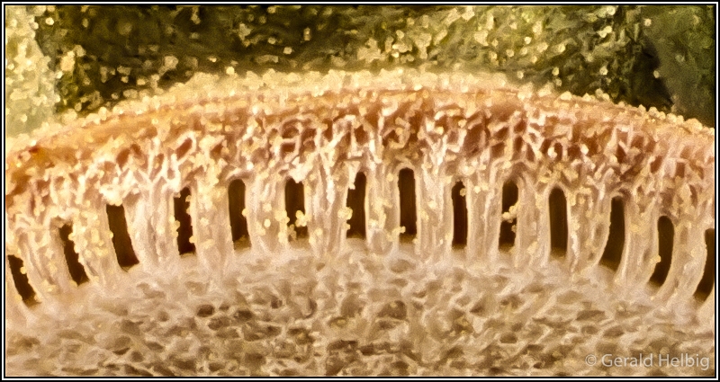 die Kapsel gibt es leider nicht mehr. Die Fotos sind bereits im Sommer enstanden. Ich war fasziniert, dass das 2,5x Objektiv die Sporen auflöst. Die Überschärfung habe ich da in Kauf genommen. Aber mit einem 10x-Objektiv ist das bestimmt genial. Vorallem würde sich hier ein "PanoStack" anbieten. Da wollt ich Dich mal Folgendes fragen: