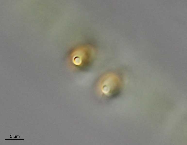 ich habe letzte Woche die Goldalge Chrysopyxis bipes gefunden, über die es, wie über alle Chrysopyxis-Arten, nur wenig Literatur zu geben scheint. Martin Kreutz hat früher schon im Forum Chrysopyxis inaequalis vorgestellt (https://www.mikroskopie-forum.de/index.php?topic=5493.msg37264#msg37264).