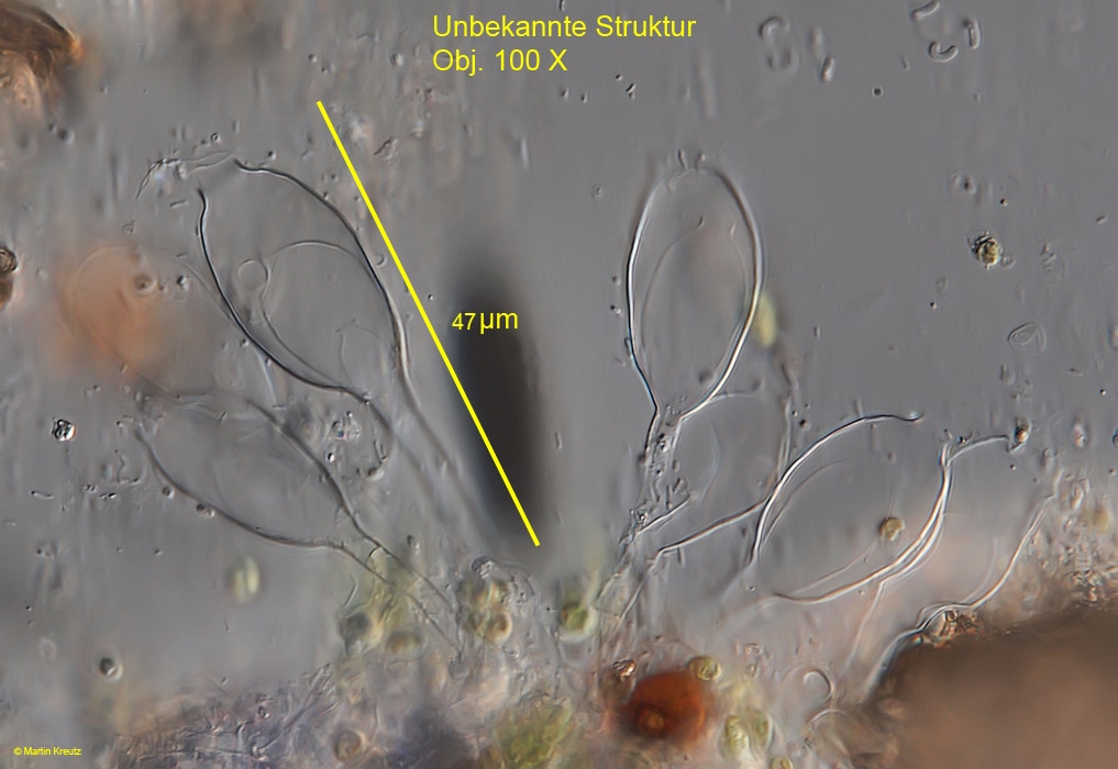 diese seltsamen Strukturen fand ich vor einigen Tagen in Proben aus dem Simmelried. Ich habe nur 1 Foto im vorübergehen gemacht. Es scheinen eine Art leerer Cysten zu sein. Interessanter Weise scheinen sich die Srukturen immer kleiner werdend zu wiederholen, ähnlich wie bei den russischen Matroschka-Figuren. Die Strukturen sind nicht sehr groß (sieht Messbalken). Ich nehme an, es sind Cysten eines Pilzes. Ein Gebiet, auf dem ich völlig blank bin. Vielleicht kann jemand mehr dazu sagen.