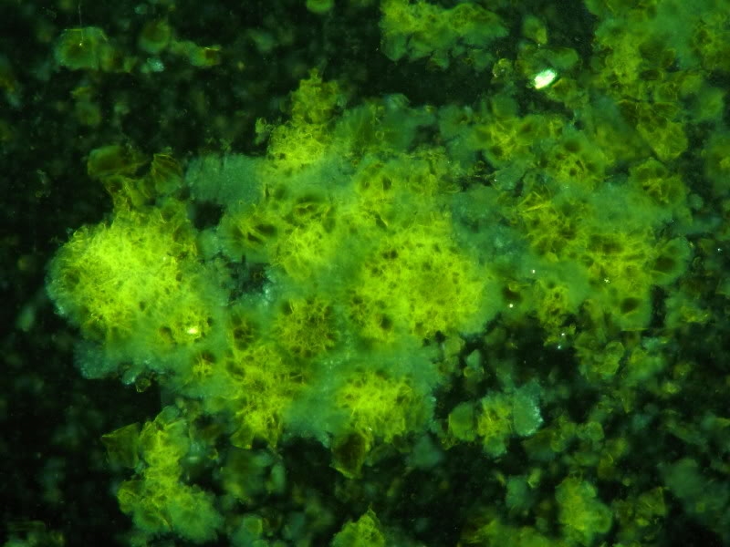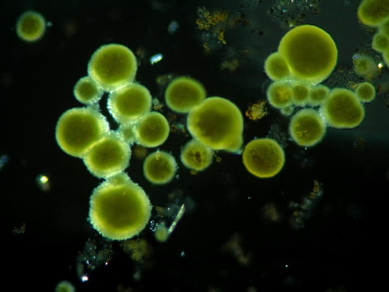 nun will ich mal zeigen, was bei mir rausgekommen ist. Ich habe ein Reagenzglas zur Hälfte mit Stückchen der weissen Birkenrinde gefüllt; mit Ethanol aufgefüllt und einige Male aufgekocht, abgegossen und langsam verdunsten lassen. Zurück blieben hellgrün-gelbe Sphärolite Bild 1