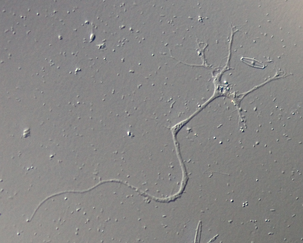 ja, ja, die Unzulänglichkeiten der Aufnahme! Ganz schlimm ;)! Tatsächlich glaube ich diese Amöbe in meinen Proben schon öfters gefunden zu haben. Sie war jedoch immer in Detritusflocken teilweise verborgen. So schön frei habe ich sie nicht gesehen und die reticulosen Strukturen schon gar nicht. Ich meine, ich hätte auch ein paar Fotos, finde sie aber gerade nicht (wahrscheinlich im gigantischen "unknown" Ordner verborgen).