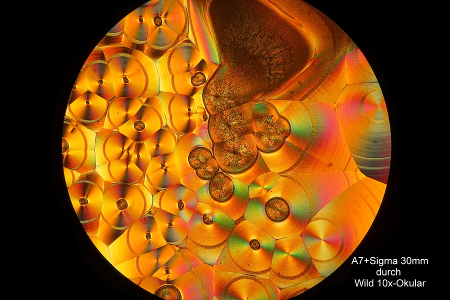 Das letzte Beispiel zeigt die Fotografie mit einem 30mm Objektiv durch ein 10x Okular: