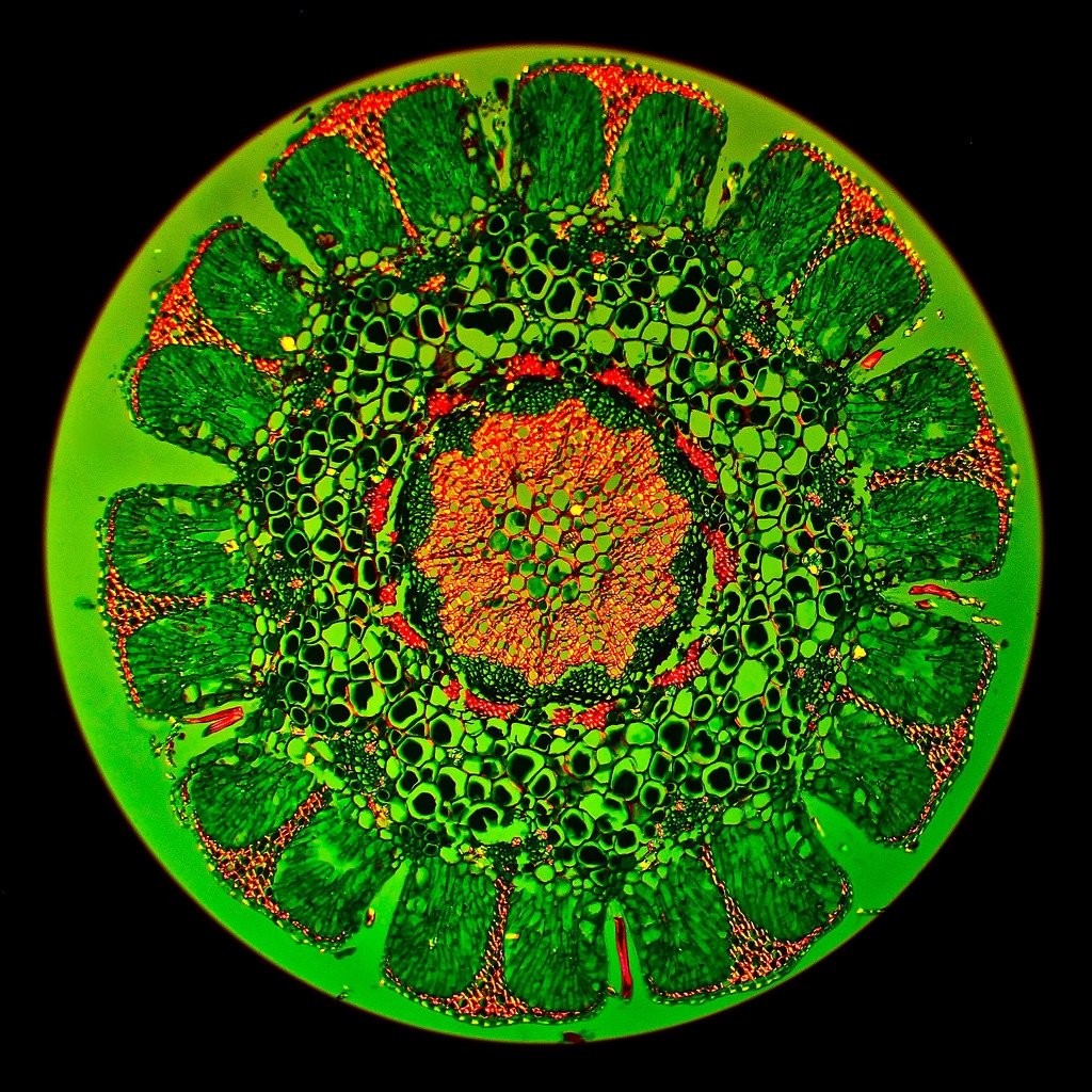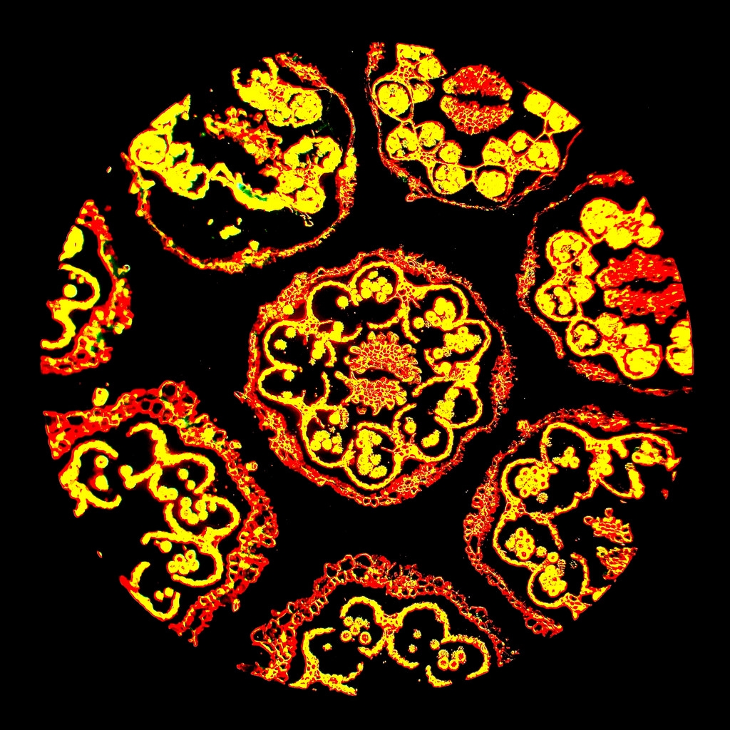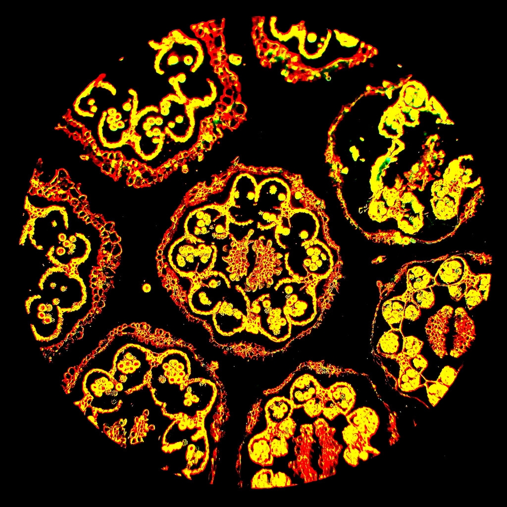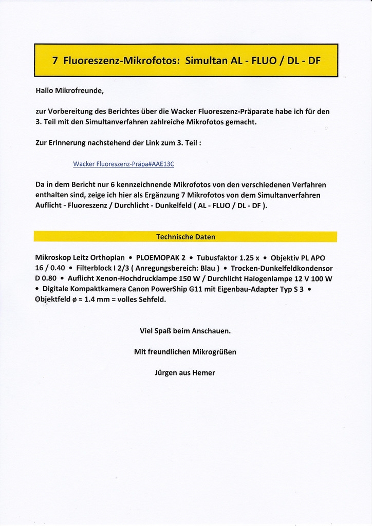 Fluoreszenz-Mikrofotos • Simultan Auflicht-Fluoreszenz / Durchlicht-Dunkelfeld
