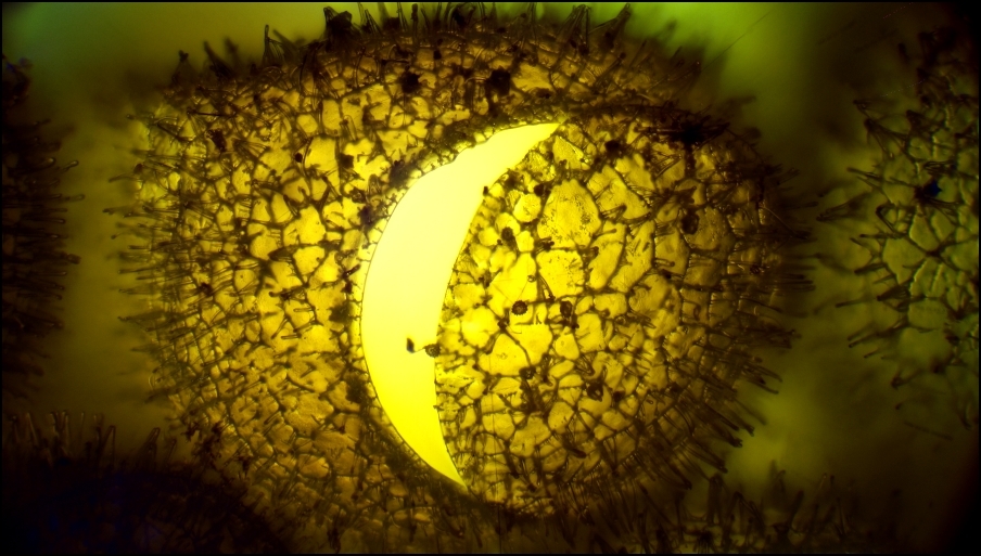 Die Struktur der Eihülle – hier im ,,Mit-Blatt-Durchlicht" – ist jedenfalls attraktiv: