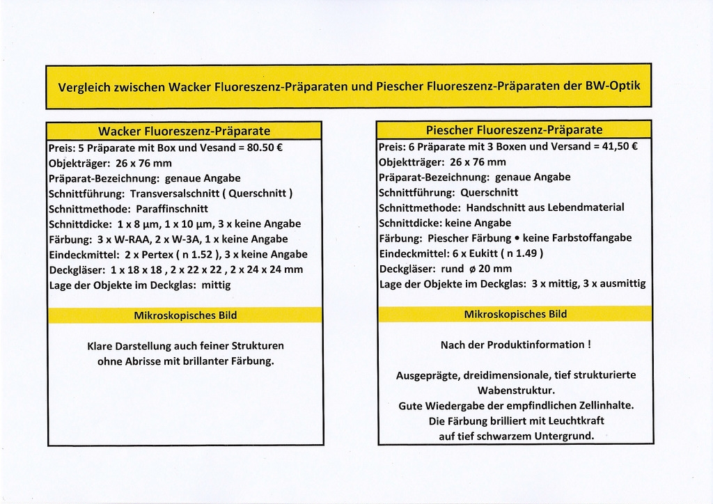 Mal eine kleine Anmerkung zu Preisen: Robin verlangt ca 5.-/Präparat. Dann macht BW-Optik einen Aufschlag wie vornehme Restaurants beim Wein. ;D So möchte ich auch mal kalkulieren dürfen!