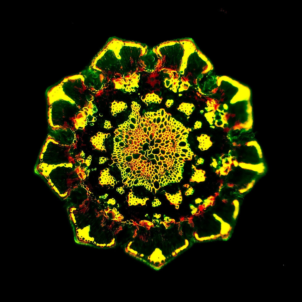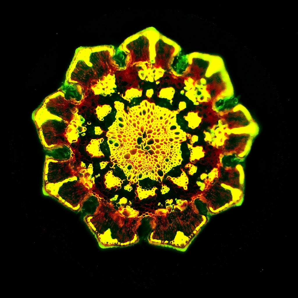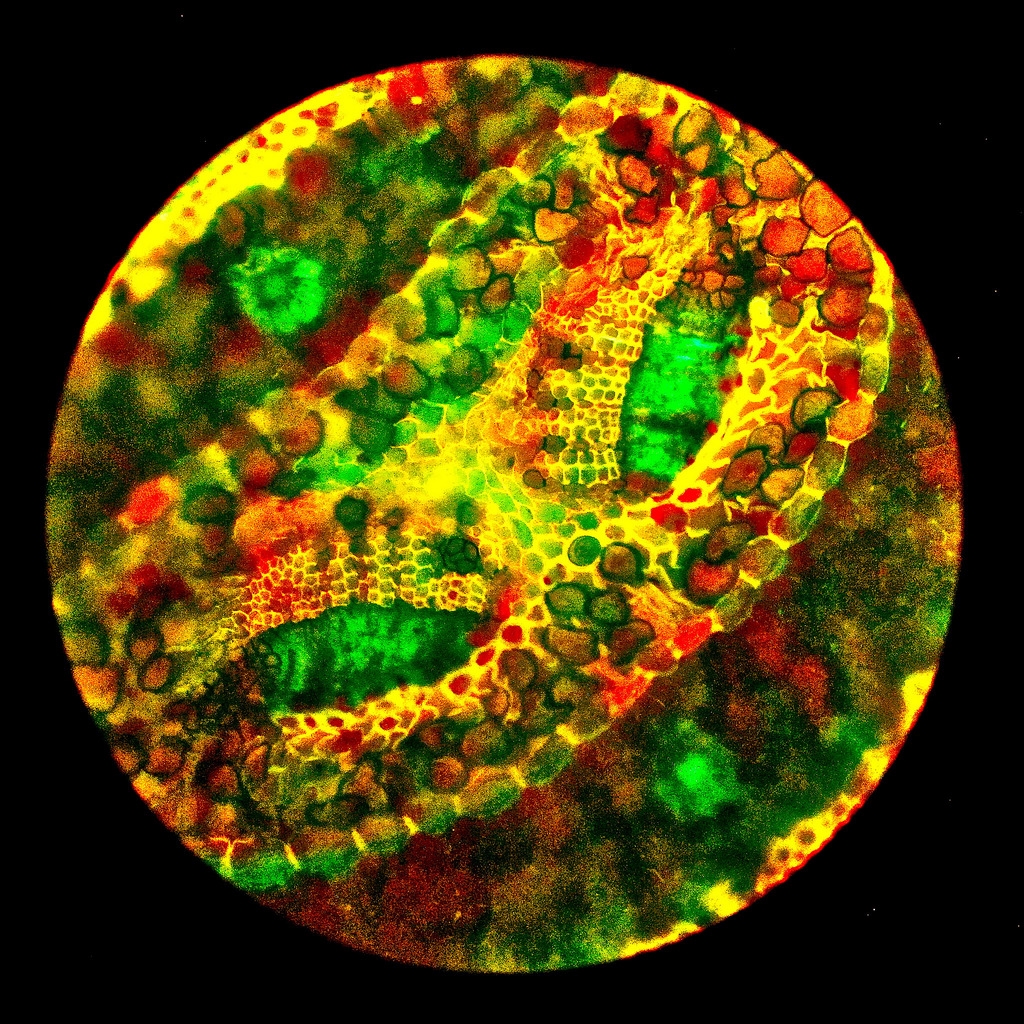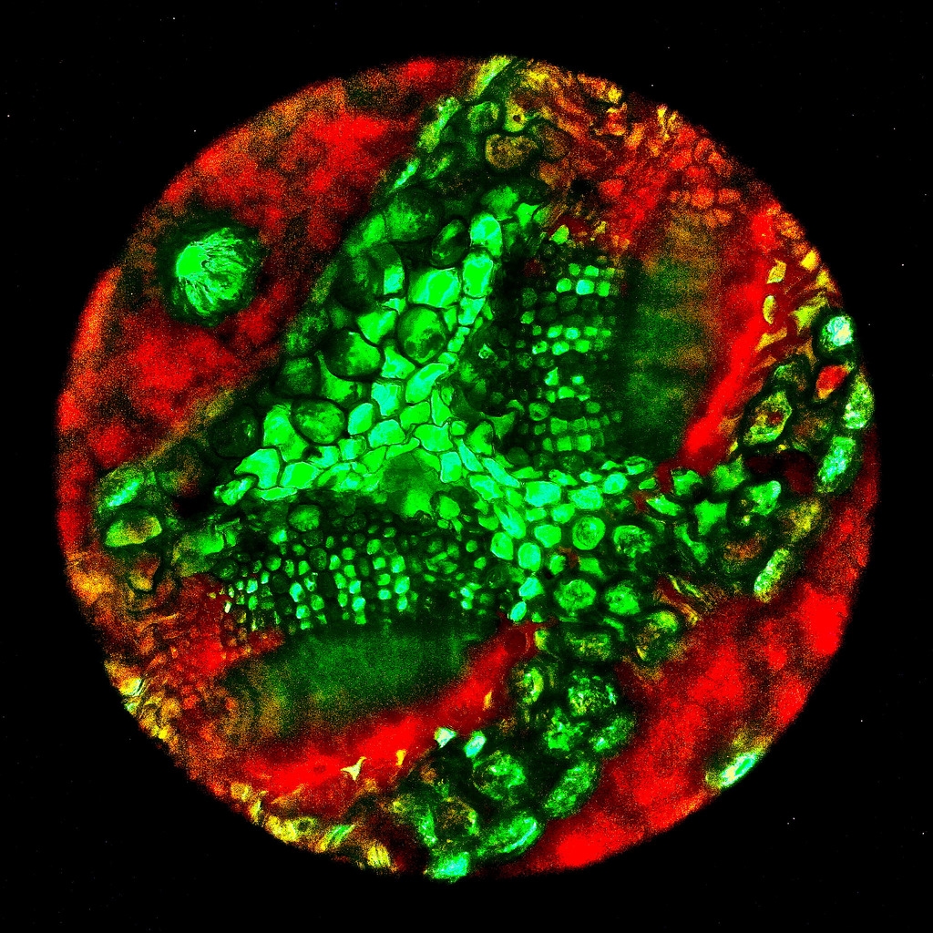 Ich will jetzt nicht kapern, aber ich habe zur Verdeutlichung einmal eine Gegenüberstellung Hellfeld/AL-Fluo gemacht an einem Spross einer Magnolie (40µm) mit W3A sim gefärbt, die ich euch zeigen möchte.