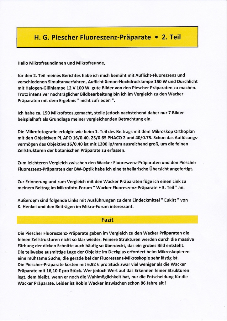 H. G. Plescher Fluoreszenz-Präparate • 2. Teil