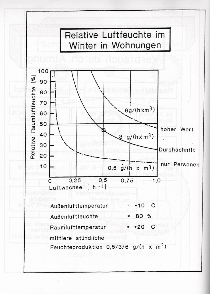 Hallo Jürgen,das  neuwertige Haus habe ich vor 4 Jahren gekauft und keine Probleme mit der Luftfeuchtigkeit gehabt.Wohnzimmer immer 55%  Labor 60% .Nur nach den Malerarbeiten und mit der Heizperiode, trat auch an den Heizungskörpern, nur im Wohnzimmer  Schwarzstaub auf.