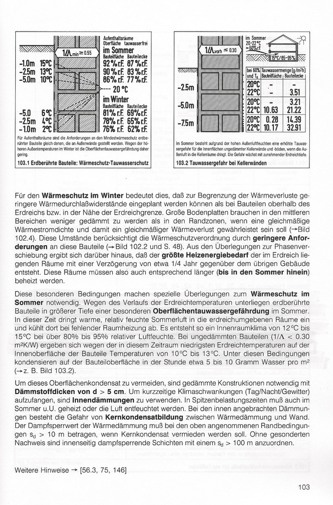 Als Beispiel füge ich für Keller ( Erdberührte Bauteile ) zwei Seiten aus einem Baufachbuch an, aus denen leicht ersichtlich ist, was man alles beachten muss.