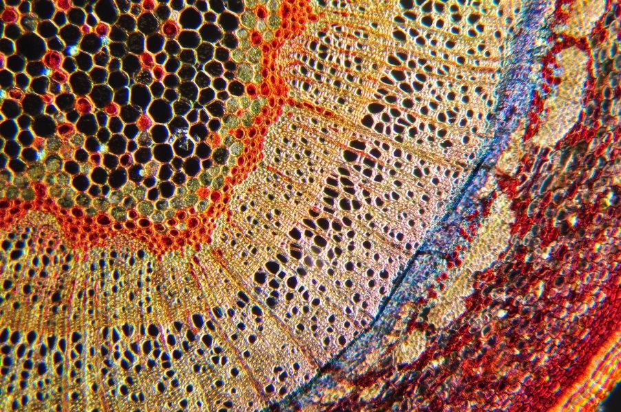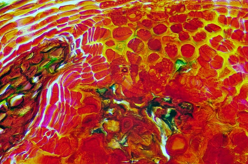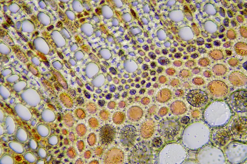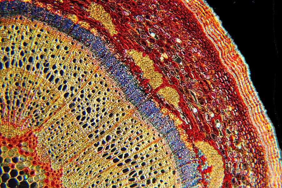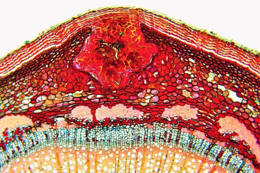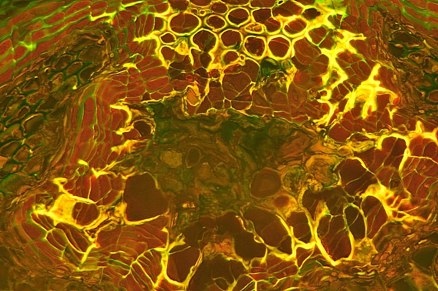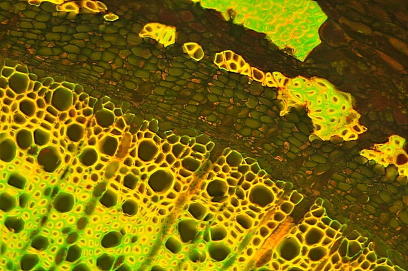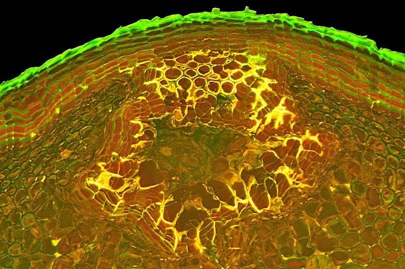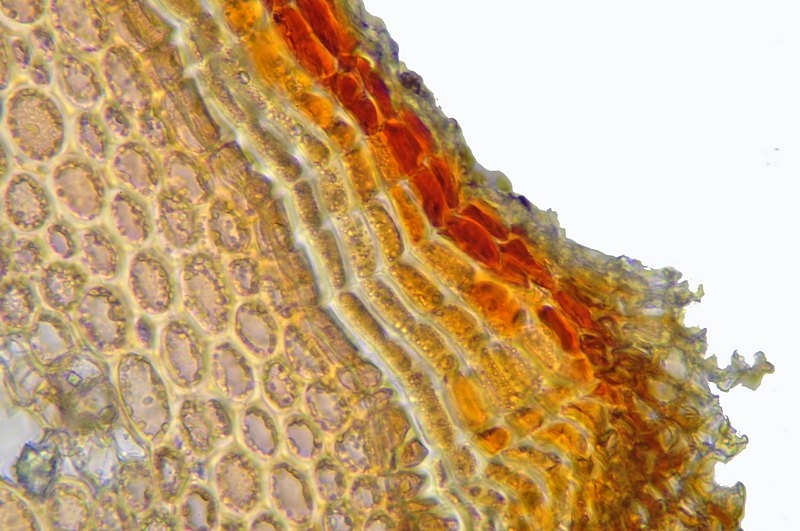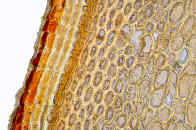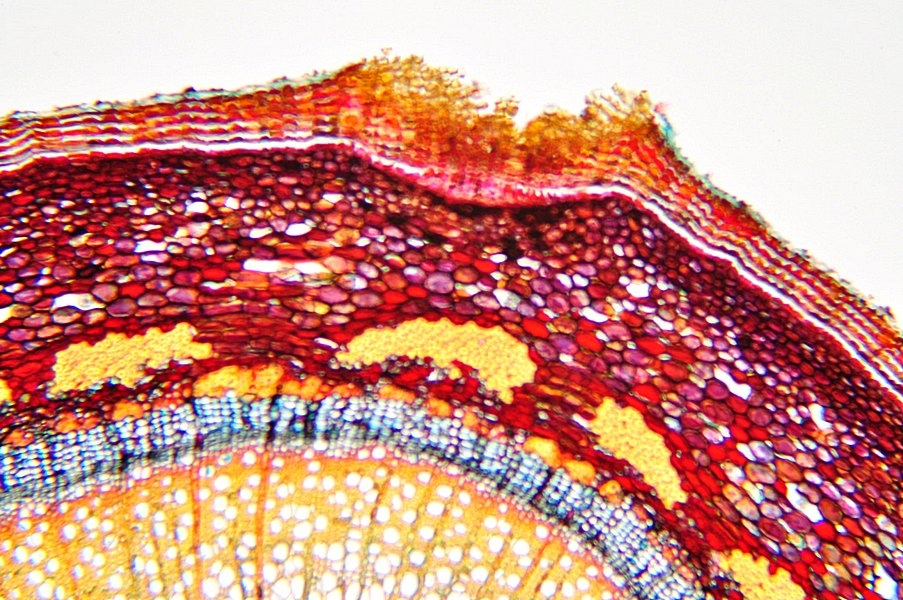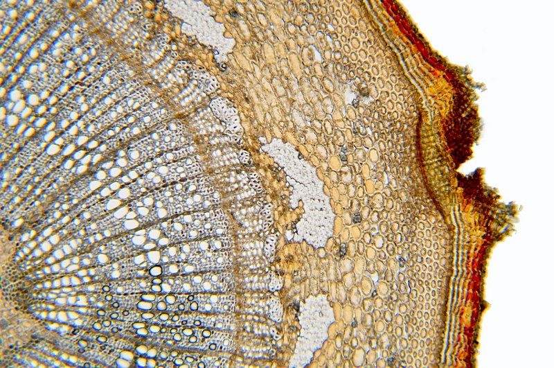 der Spross dieser Pflanze ist schwer zu schneiden. Nach mehreren Versuchen hat es dann doch geklappt. Die Strukturen kann man tatsächlich auch ohne Färbung klar erkennen.