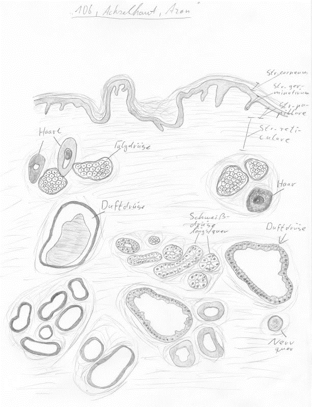 - Die typischen ekkrinen Schweißdrüsen kann man gut von ihren Ausführungsgängen unterscheiden,