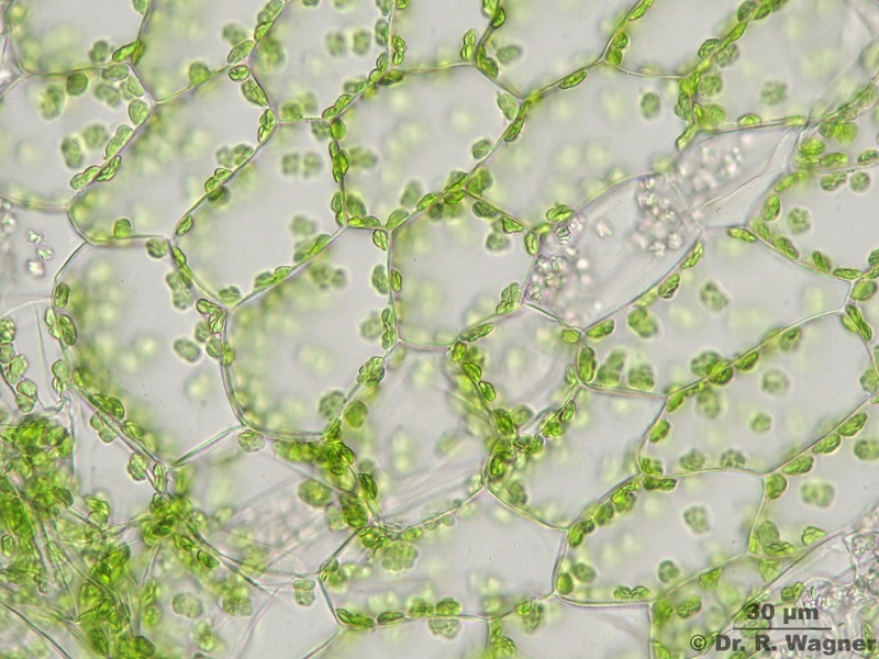 - Blattquerschnitt. Laminazellen mit Chloroplasten
