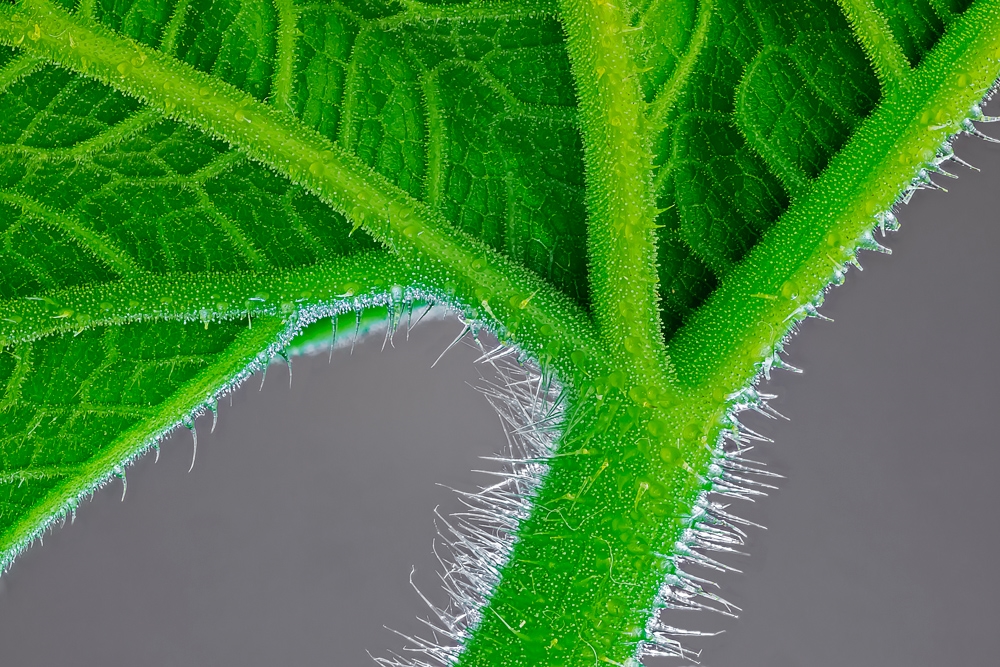 hier zeige ich mal ein "simples" Kürbisblatt von der Unterseite.