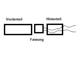 Normalerweise wird die Bakelitfassung mit dem Vorderteil in das Hinterteil eingeschraubt; als Verdrehsicherung dient eine Nase an der Fassung welche in eine Nut im Hinterteil eingreift.