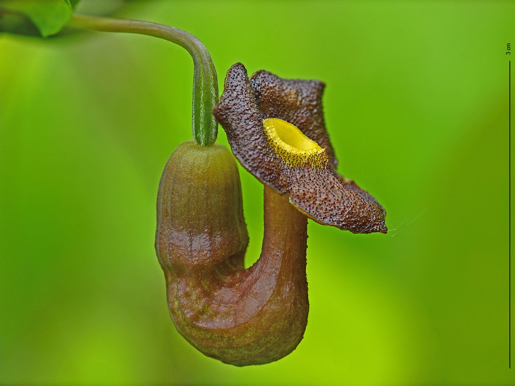 Stängelquerschnitte von Aristolochia kennen wir alle, aber die Blüte von Aristolochia macrophylla?