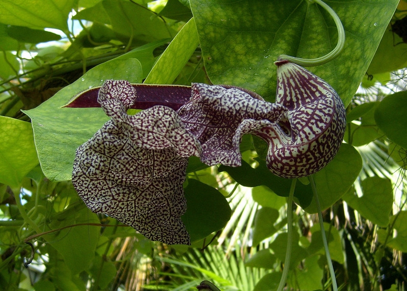 die Aristolochien haben interessante Blüten. Ich erlaube mir hier ebenfalls ein Bild einzustellen (hoffe daß es Dir recht ist) das ich vor 5 Jahren im Palmengarten in Frankfurt machen konnte: