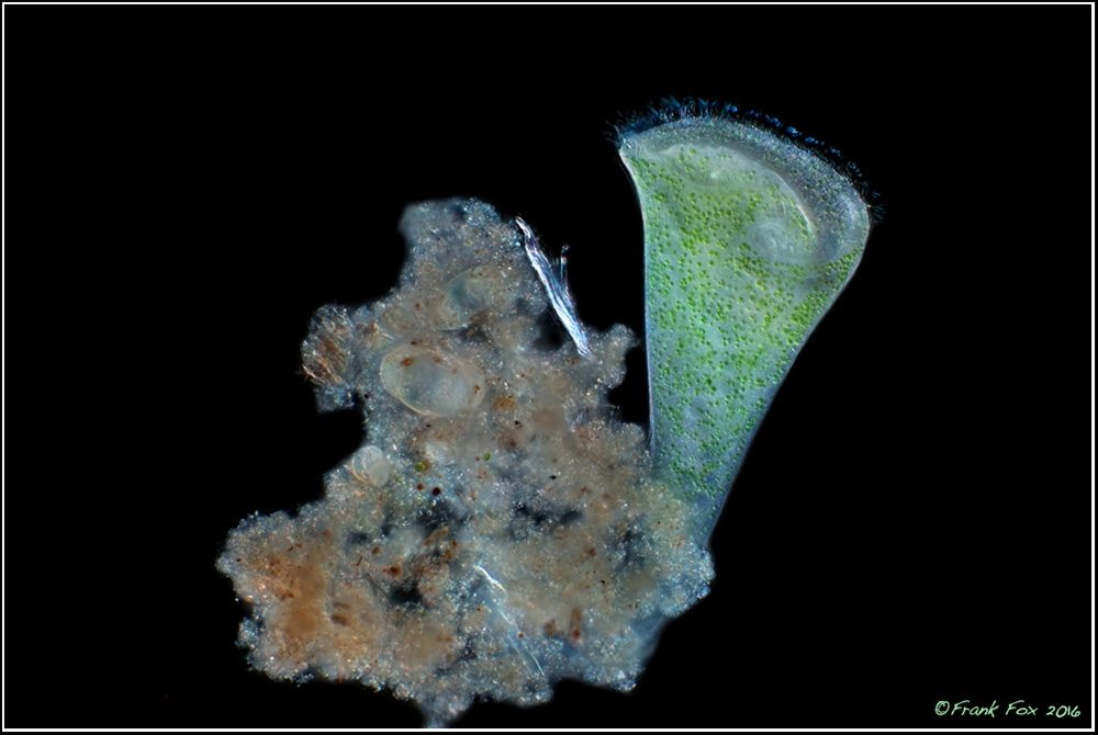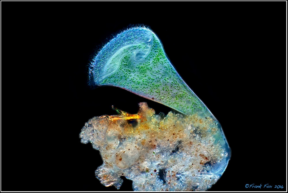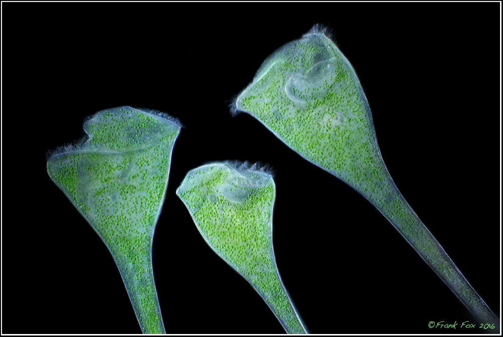 Es ist "fast" unmöglich, ein paar Aufnahmen (ca. 10 bis 15 Einzelaufnahmen) hintereinander in unterschiedlicher Fokusebene zu machen, ohne dass der Stentor seine Position verändert.