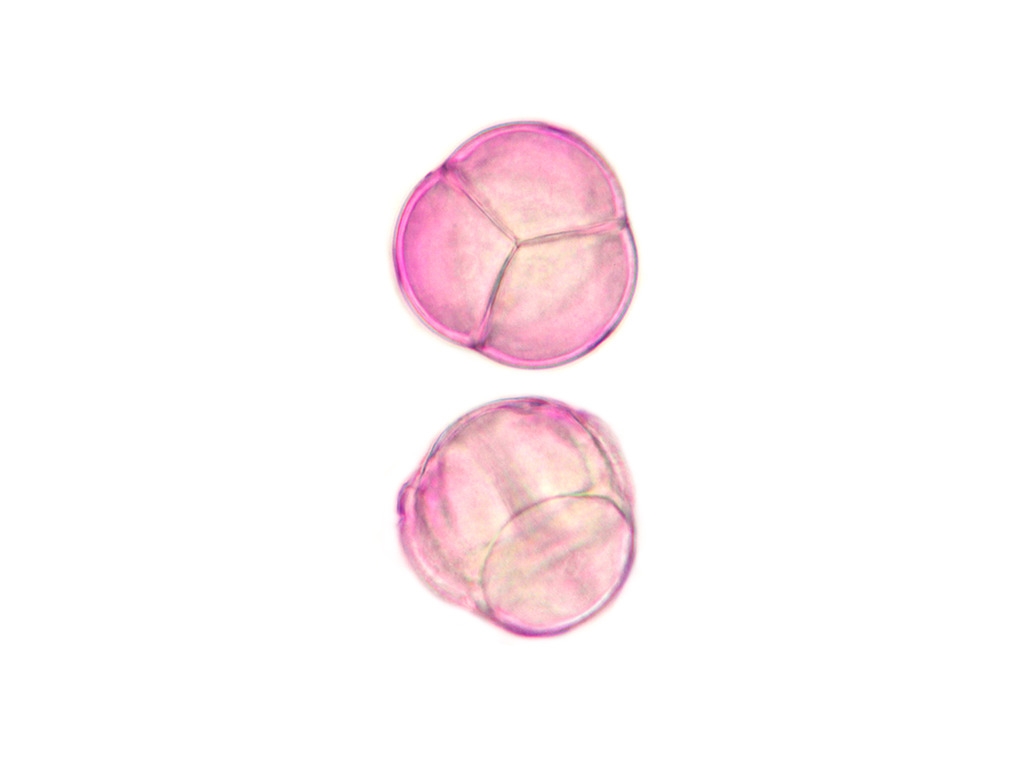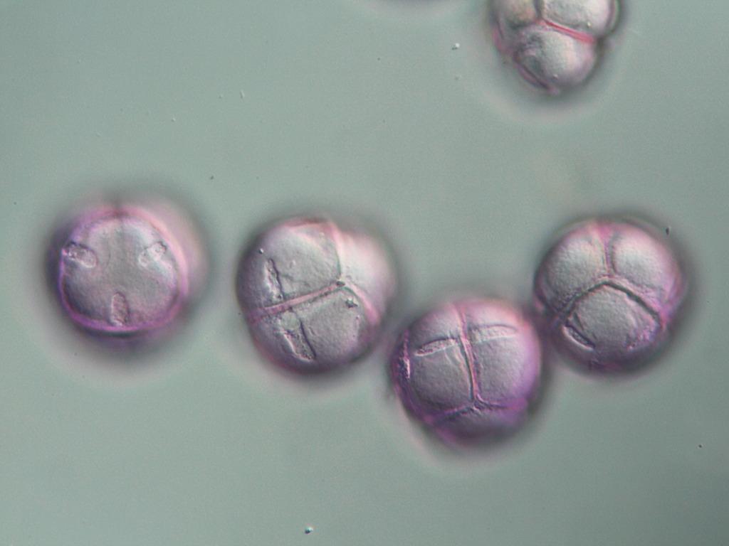 Pollen im Hellfeld: einzelne Pollenkörner zu viert vereinigt