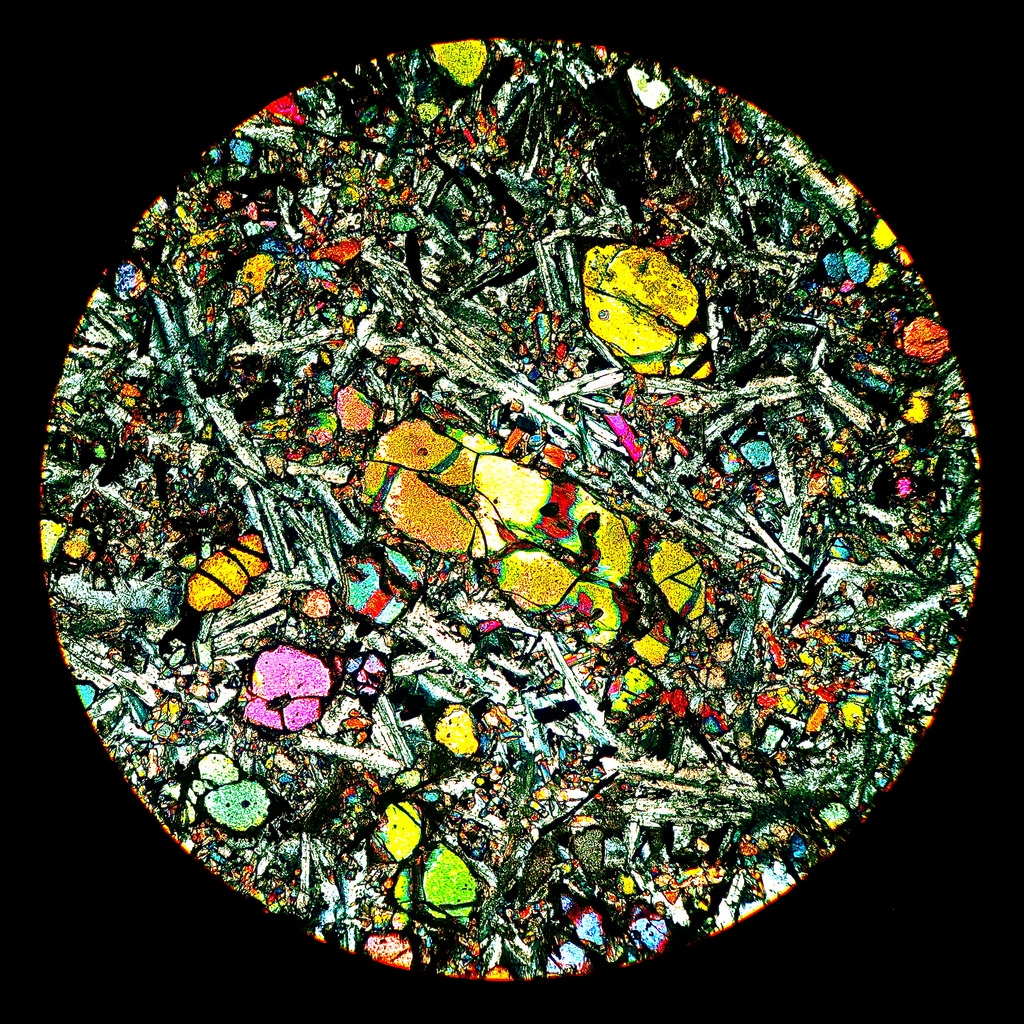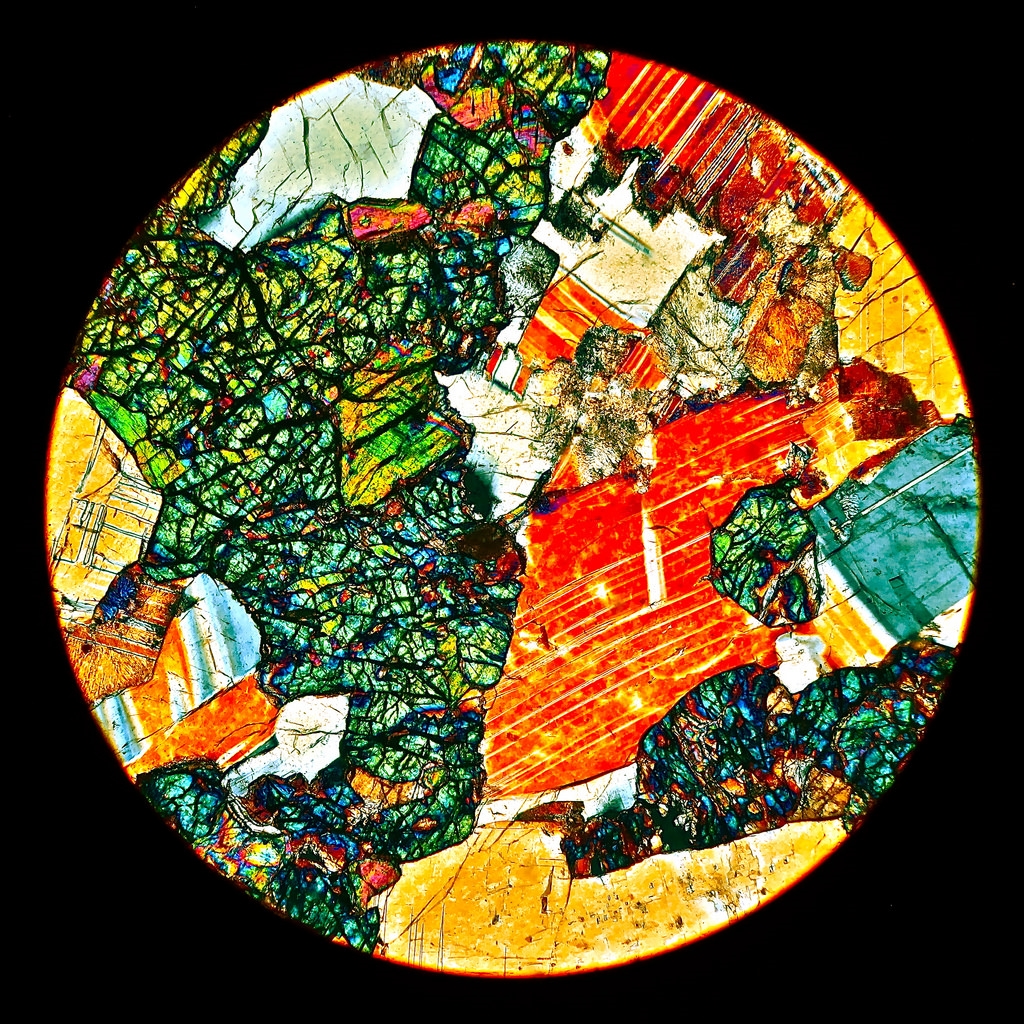 Olivinreicher Basalt und Gabbro im zirkular polarisierten Licht
