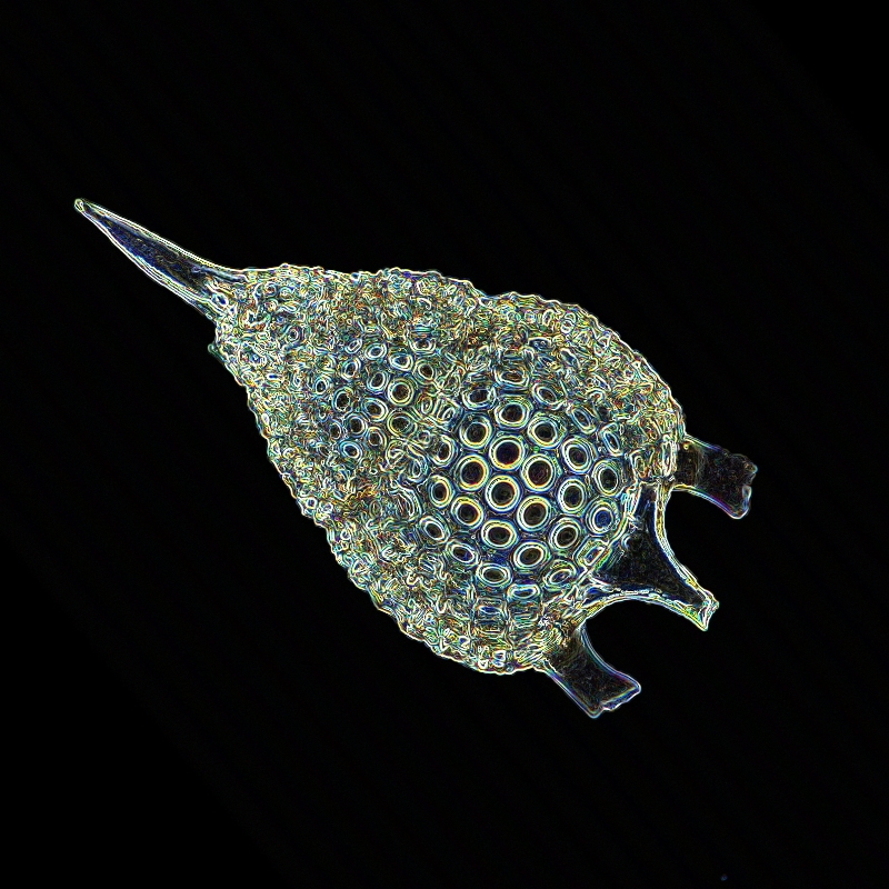 heute habe ich mal ein wenig mit meinem Bildbearbeitungsprogramm GIMP am Foto einer Radiolarie gespielt. Mit Filter/Kanten finden/Kanten kam dieses Bild heraus: