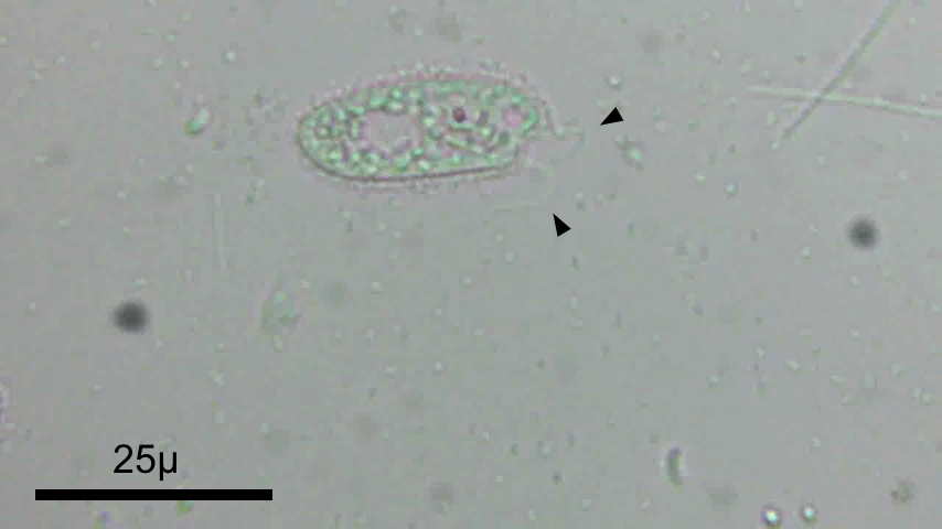 Mir ist bei dieser Aufnahme auch aufgefallen das am rechten "Ende" zwei Fäden (Flagella?) herauswachsen. Das habe ich auf Bildern von Tetrahymena nicht erkennen können. Handelt sich also sicher doch um eine andere Spezies.