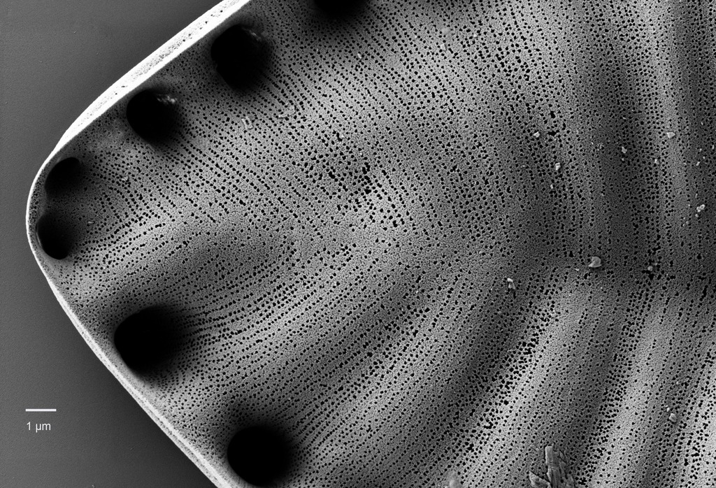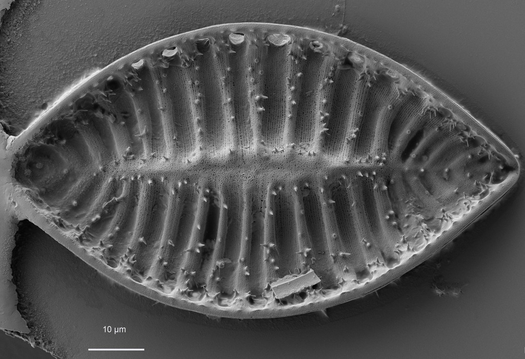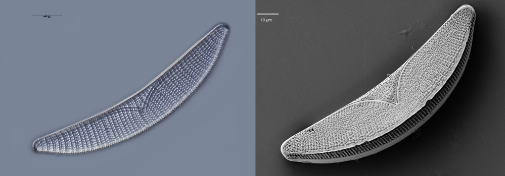 Zum REM Bild der Epithemia species möchte ich noch anmerken, dass ich vermutlich in die Innenseite fotografiert habe, während Wilfried die Außenseite abbildet.
