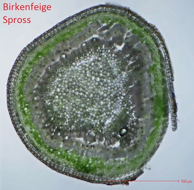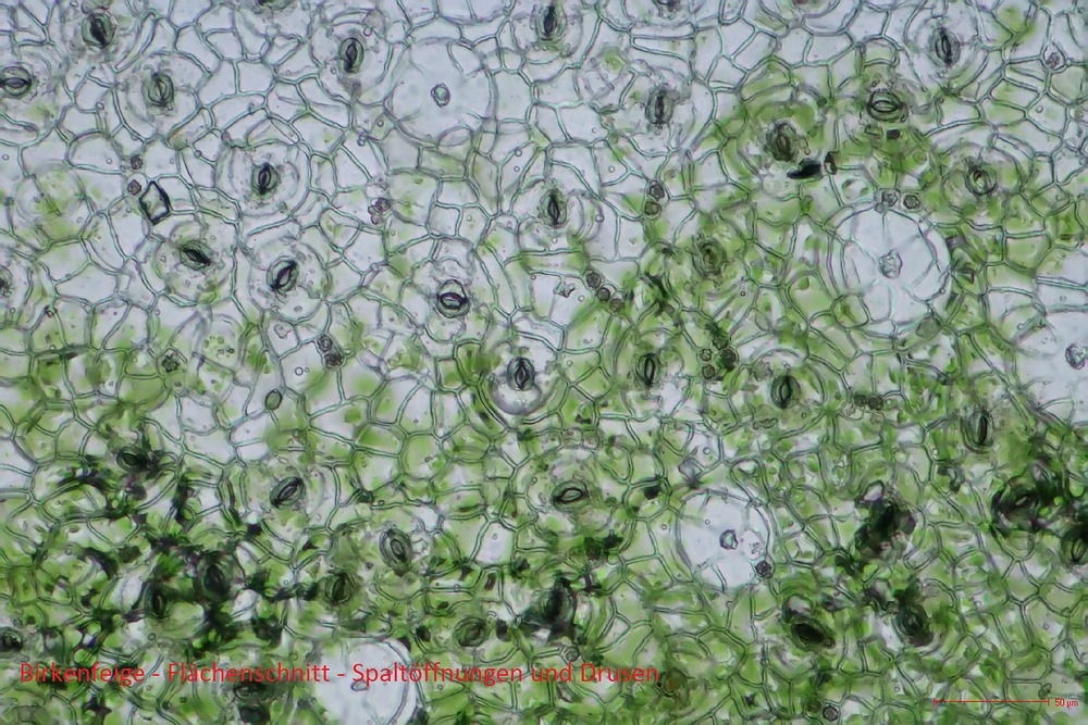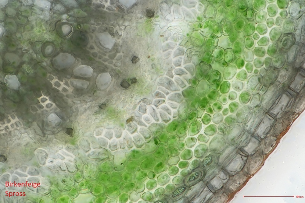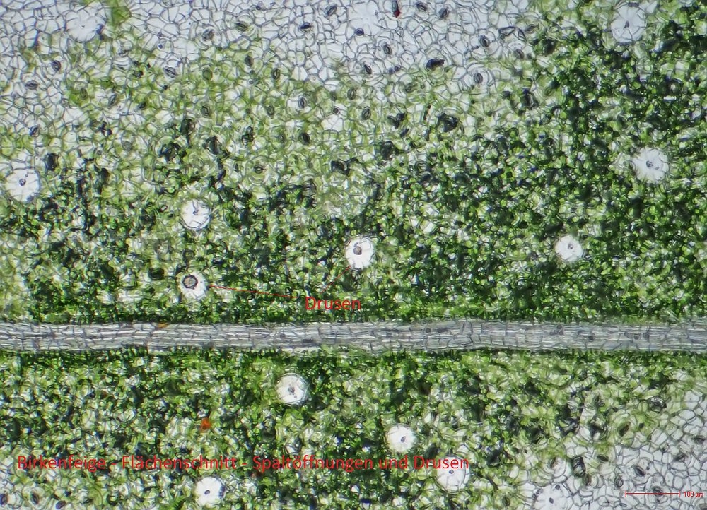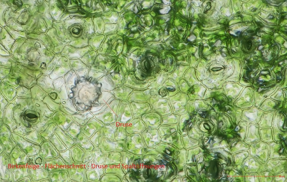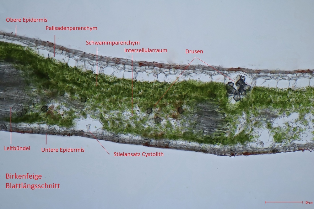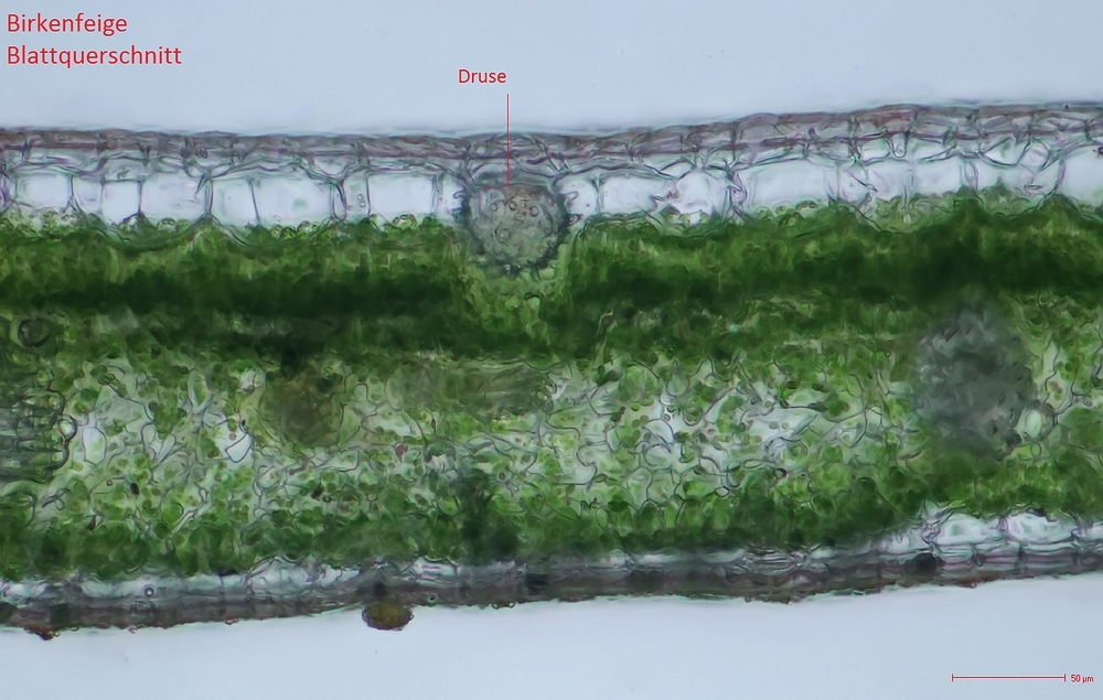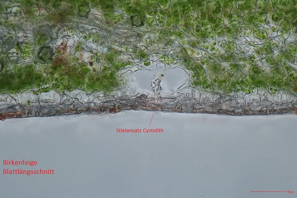 Schön auch die Drusen und die Cystolithen! Da muss man Glück haben, sie im Schnitt richtig zu erwischen.