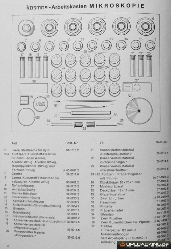 Wer wissen möchte, was im alten Kosmos Arbeitskasten Mikroskopie drin war, kann hier (oder im Stehli) gucken: