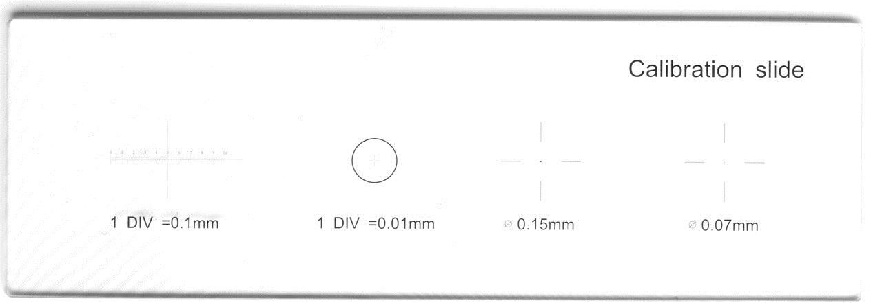 Jedenfalls habe ich kürzlich 8 US-Dollar inklusive Versand für ein "Calibration Slide" riskiert, ein Glasobjektträger mit kleiner Skala. Ich konnte zwar die Präzision mangels Vergleich nicht testen, aber ich zeige Euch mal wie das gute Stück aussieht.