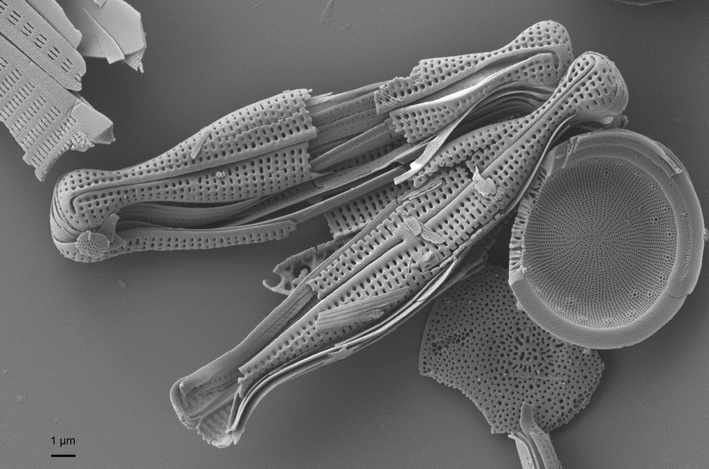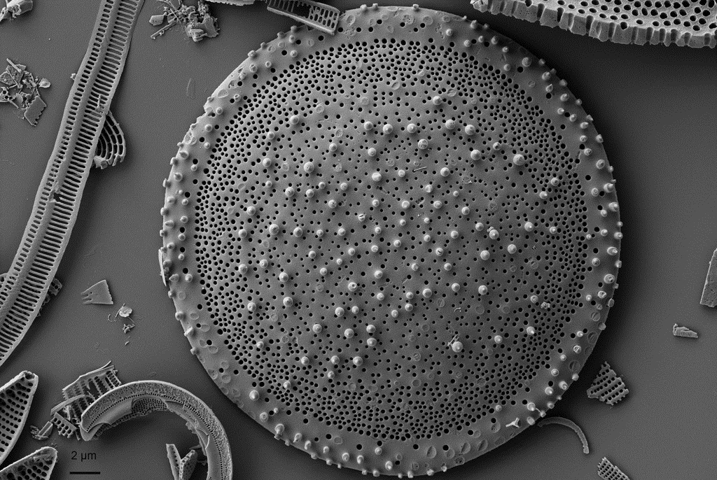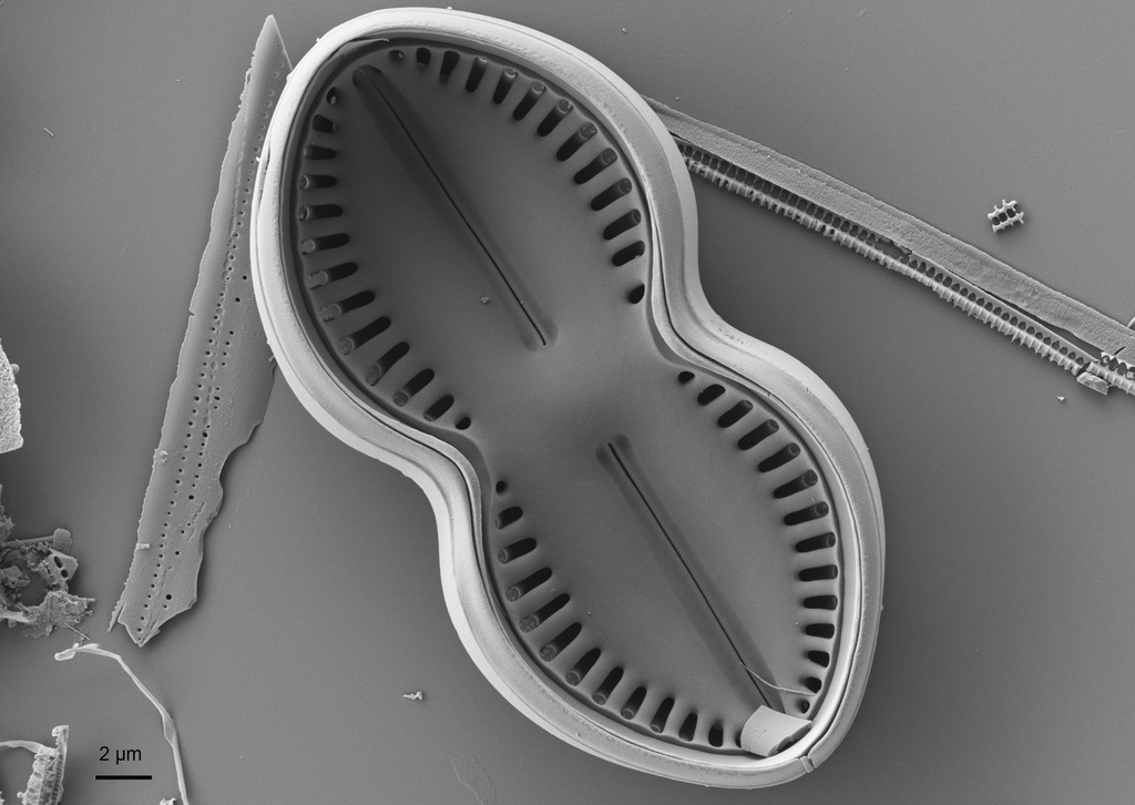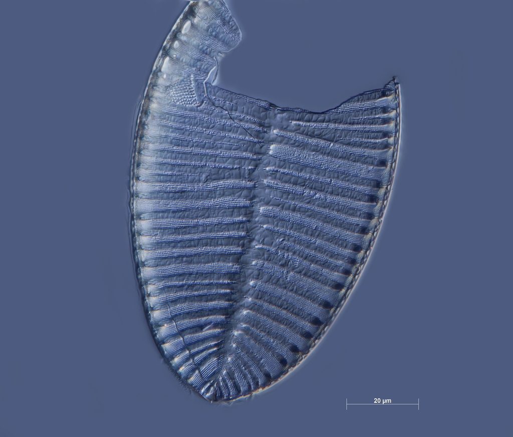 vielen Dank für diese schönen Fotos! Ich finde die Kombination von Lichtmikroskop und REM immer sehr aufschlussreich. Mit dem Lichtmikroskop kann man sich einfacher den Objekten nähern und schafft mehr Masse, das REM zeigt feinere Details. Besonders interessant finde ich das vorletzte Foto, das bei der dickwandigen angebrochenen zentrischen Kieselalge so klar den Querschnitt durch die Wandung zeigt.