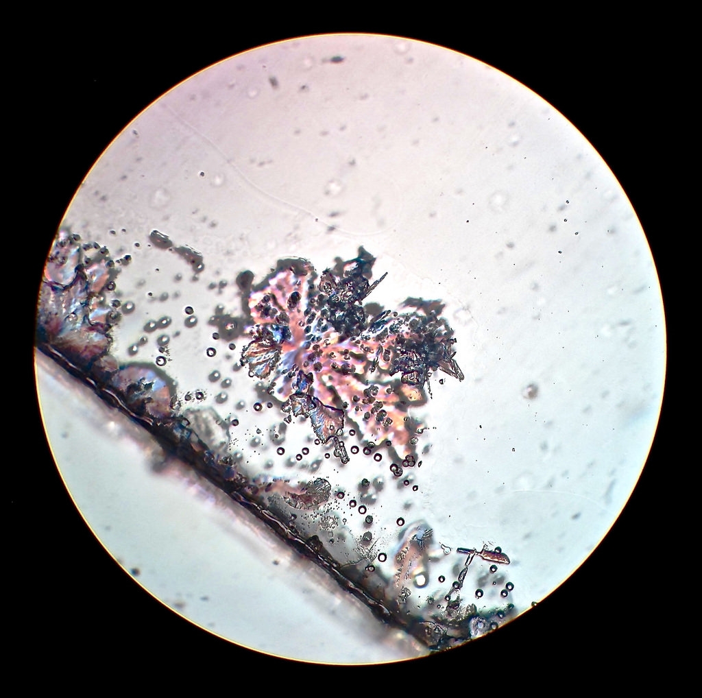 Ergänzung :  Heute habe ich mir nochmals die Verdunstungspräparate vom 1. März 17 angesehen. Die Präparate haben sich verändert.