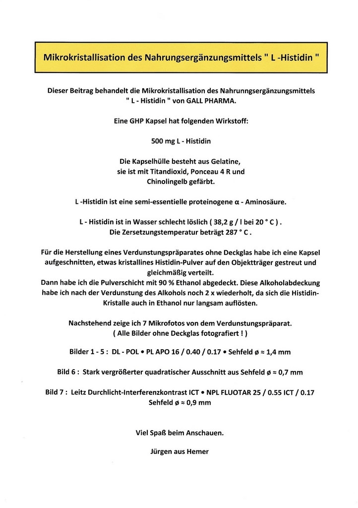 Die Histidin-Kristalle zeigen eine große optische Aktivität !