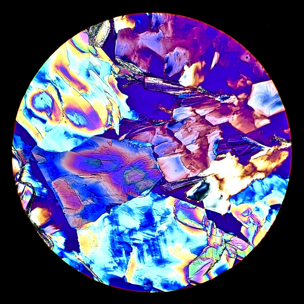 Schon bei einer kleinen Drehung des Objekttisches verändern sich die Interferenzfarben erheblich !