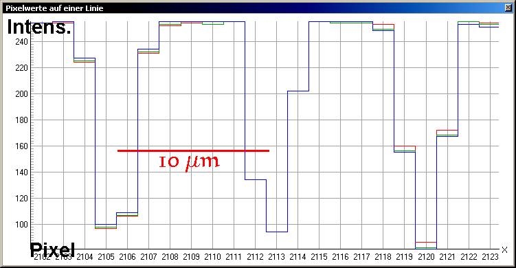 Analyse einer 20µ Strecke mit Pixelauflösung aus obigem Bild