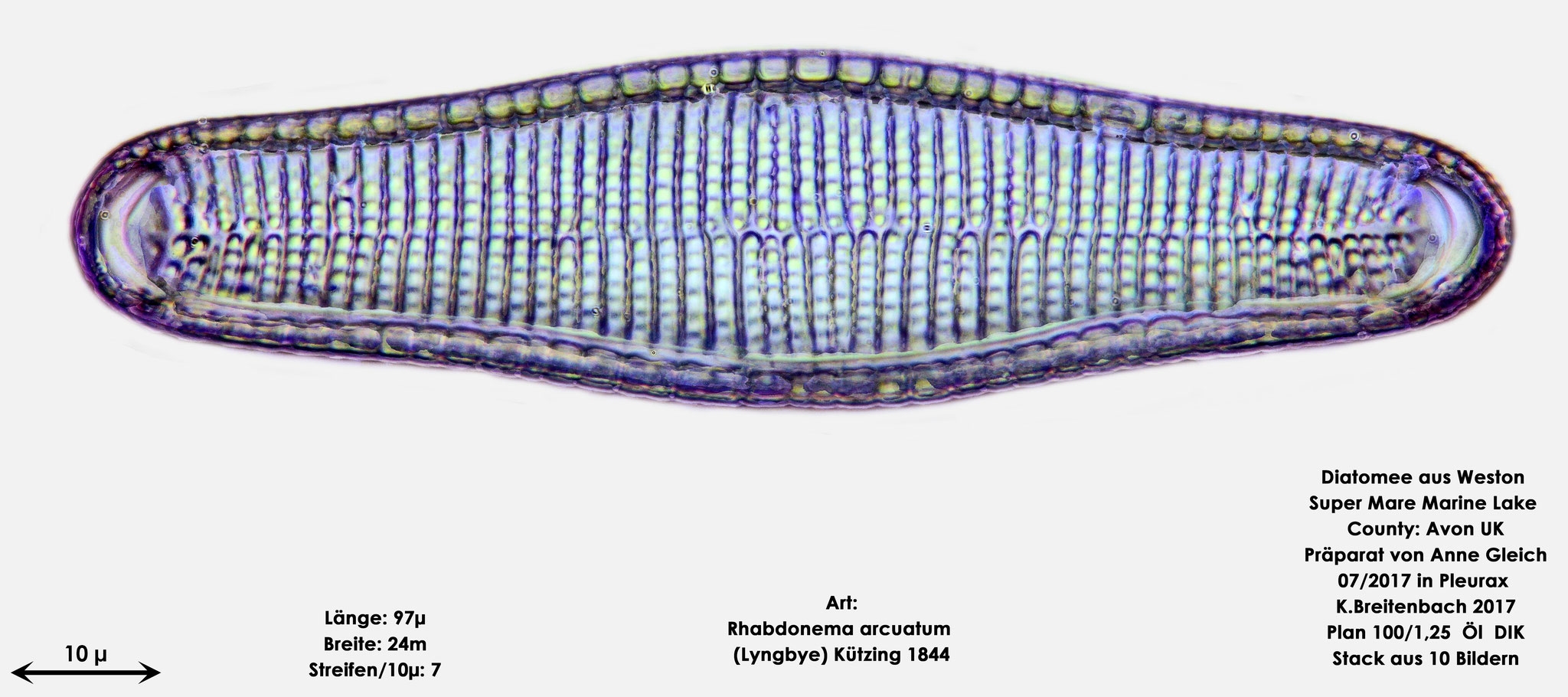 Bild 10 Diatomeen aus Weston Super Mare, UK; Art: Rhabdonema arcuatum (Lyngbye) Kützing 1844 Gürtelansicht