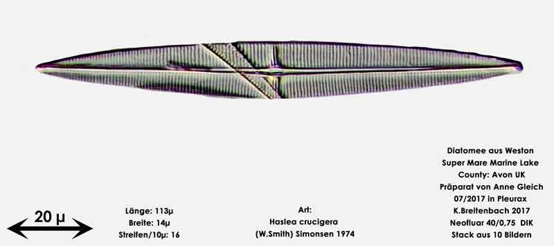 Bild 8 Diatomee aus Weston Super Mare, UK; Art: Haslea crucigera (W.Smith) Simonsen 1974