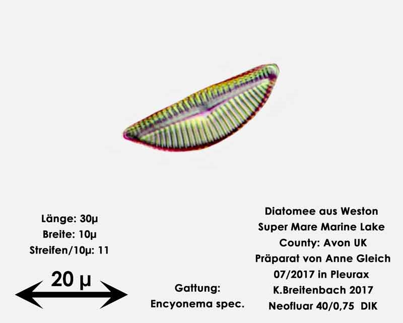 Bild 2 Diatomeen aus Weston Super Mare, UK Gattung: Encyonema spec.