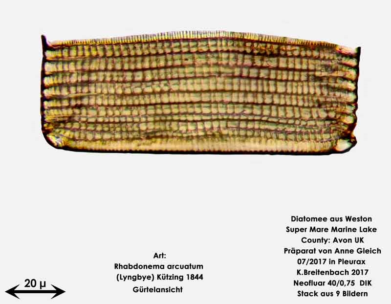 Bild 9 Diatomeen aus Weston Super Mare, UK; Art: Rhabdonema arcuatum (Lyngbye) Kützing 1844