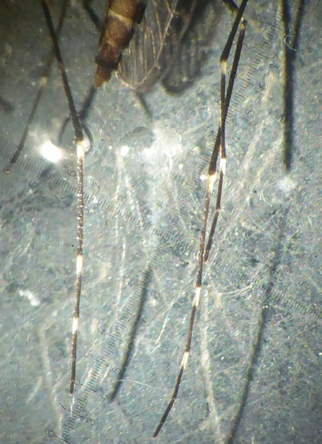Aber was ist das? Beine mit weißen Quer-Ringeln hat sie. Einen deutlichen weissen Strich in der Kopfregion konnte ich nicht ausmachen, die Kontraste durch AFE und mit der Knipskiste durch Bino-Okular sind auch nicht super. Aber vielleicht kann hier jemand helfen.