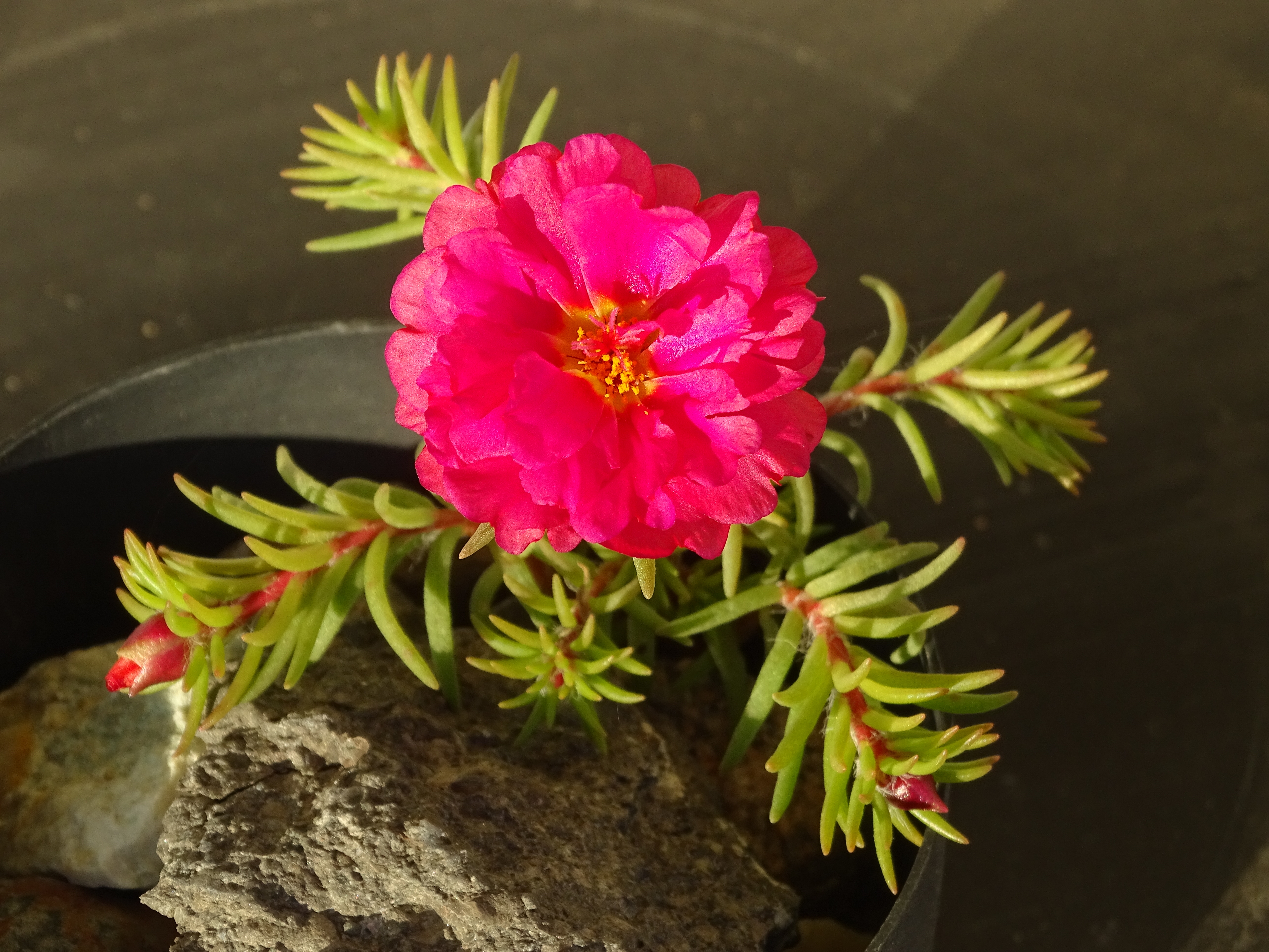 diesen Sommer ist bei mir in einem Blumentopf auf dem Balkon diese +/- sukkulente Pflanze gekeimt, von der ich aber nicht weiss was es ist bzw. wie der Samen den Weg zu mir gefunden hat. Am ehesten war es eine Frucht, die ich irgendwann einmal im Botanischen Garten aufgehoben, ausgesäht und vergessen habe. Aber das ist nur eine Vermutung. Weil jetzt die Überwinterung ansteht, wäre es wichtig zu wissen was ich da vor mir habe (und natürlich aus botanischem Interesse!).