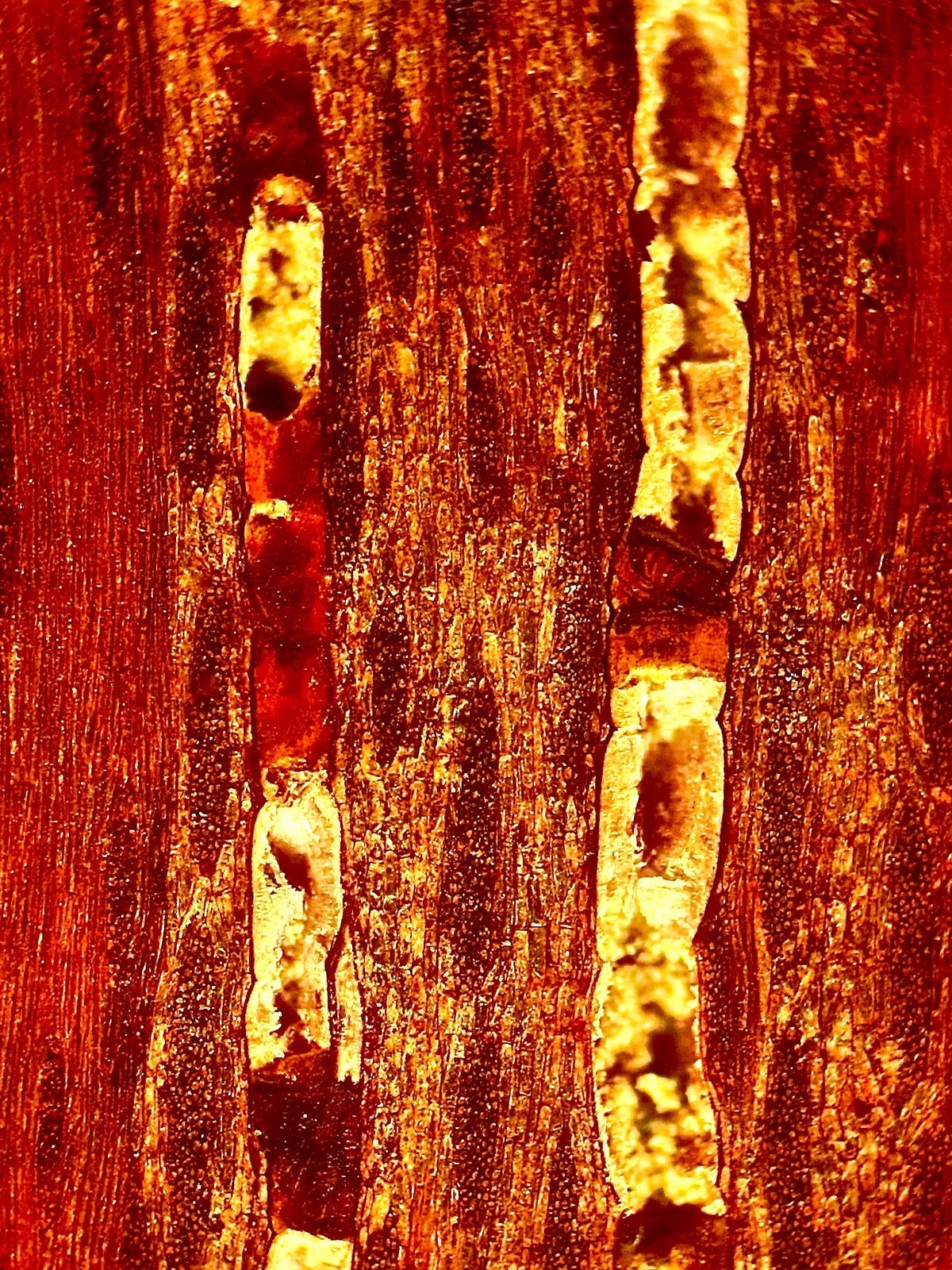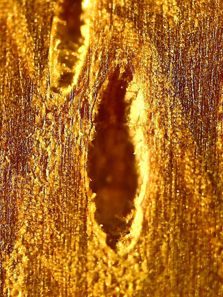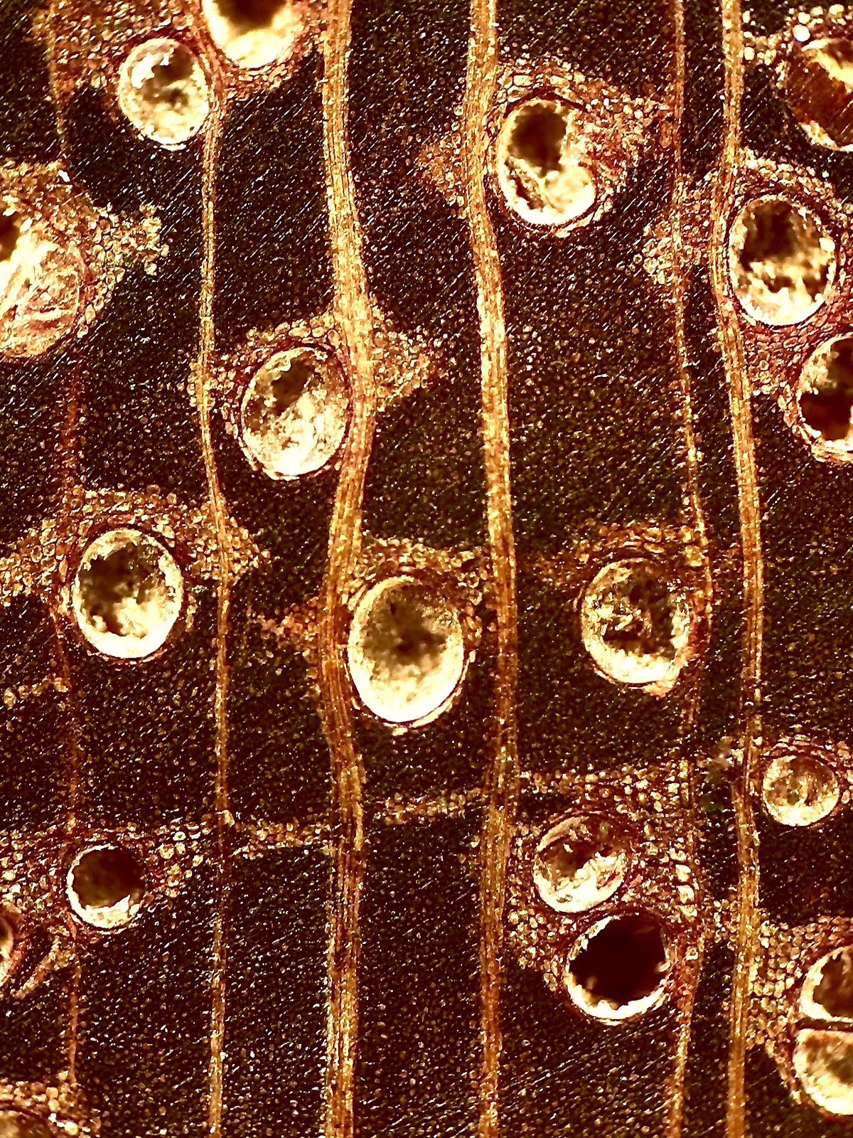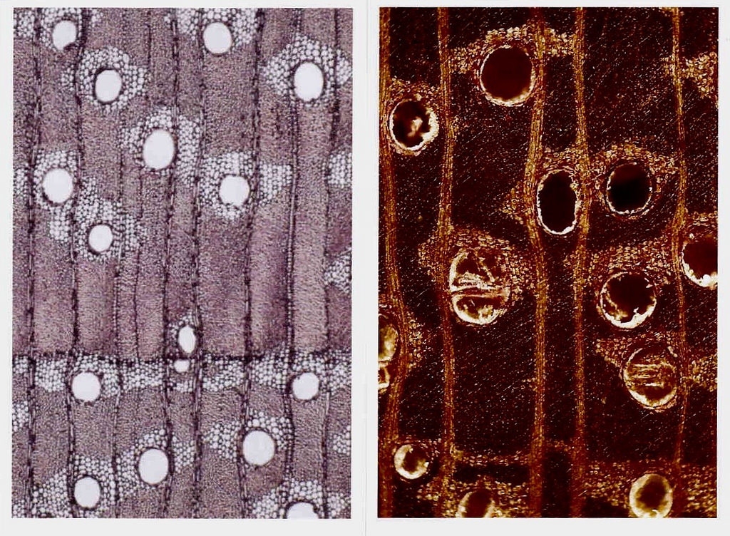 Zum direkten Vergleich der Holzstrukturen habe ich nachstehend Ausschnitte des Holzschnitt-Mikrofotos aus Handelshölzer von einem Amarant-Querschnitt
