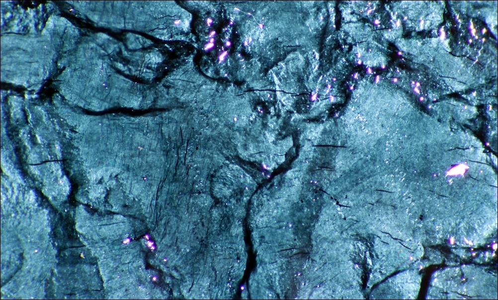 Wenn das Gold als dünne Schicht vorliegt, durchdringt das im Bereich der Langmuir-Frequenz nicht mehr reflektierte Licht das Gold, es wird teilweise transparent. Allerdings steigt bei noch höherer Lichtfrequenz die Absorption im Metall wieder ohne dass das Licht reflektiert wird, das lässt sich mathematisch durch die komplexe Dielektrizitätskonstante beschreiben. Im Ergebnis entsteht ein blaugrünes Transmissionsmaximum weil langwelliges rotgelbes Licht reflektiert und kurzwelligeres blaues Licht absorbiert wird. Die Lichttransmission ist also nicht die Differenz zwischen einfallendem und reflektiertem Licht.