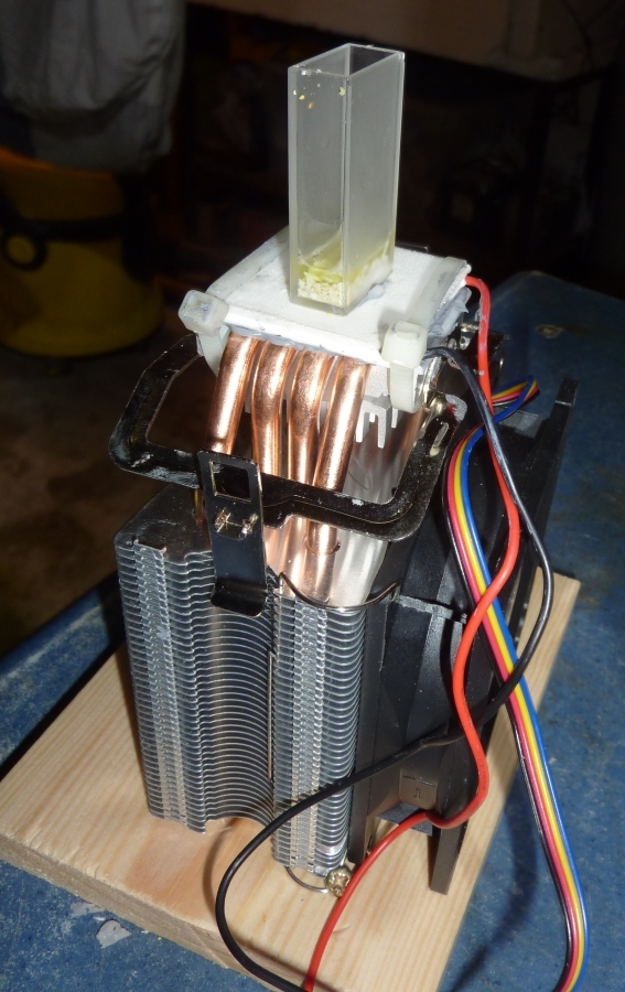 Die Küvette ist unten mit Wärmeleitpaste bestrichen und ist nach etwa 7 Minuten komplett durchgefroren.