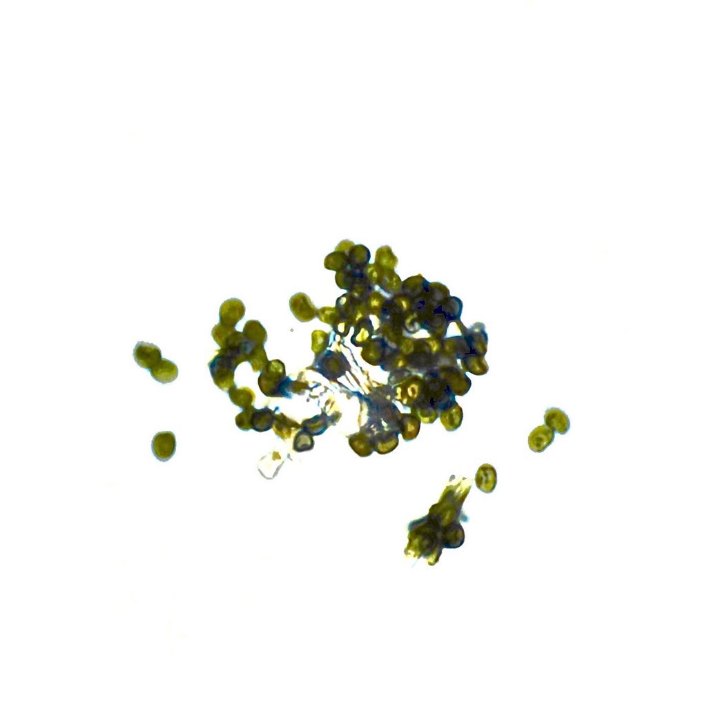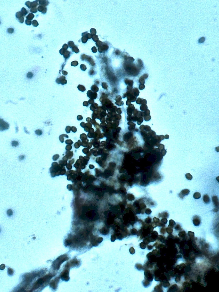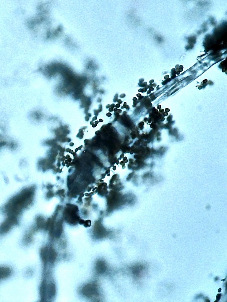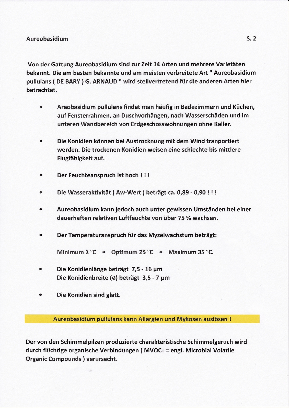 Die Klebeband-Abrisspräparate zeigten bei der mikroskopischen Untersuchung maßgeblich den Befall mit Schimmelpilzen der Gattung Aureobasidium.